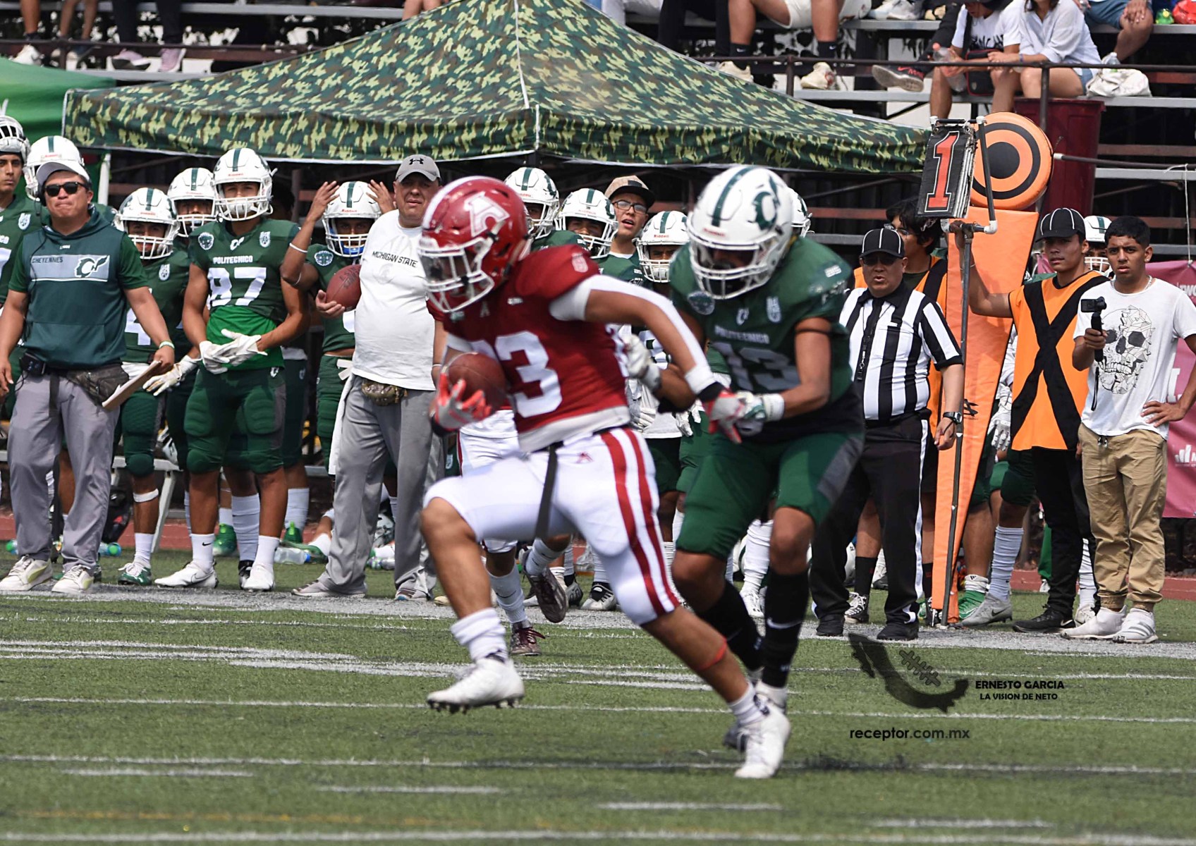 Los Cheyennes de la ESIME Zacatenco se metieron al Casco de Santo Tomás para venir de atrás y vencer a las Águilas Blancas 27-24 en la Semana 4 de la Intermedia ONEFA 2023. Duelo de hermanos politécnicos y de volteretas, tras una primera mitad dominante de la Tribu Verde. Las mejores fotos cortesía de Ernesto García, La Visión de Neto.