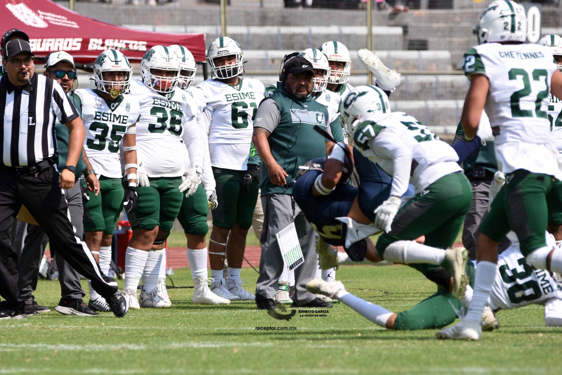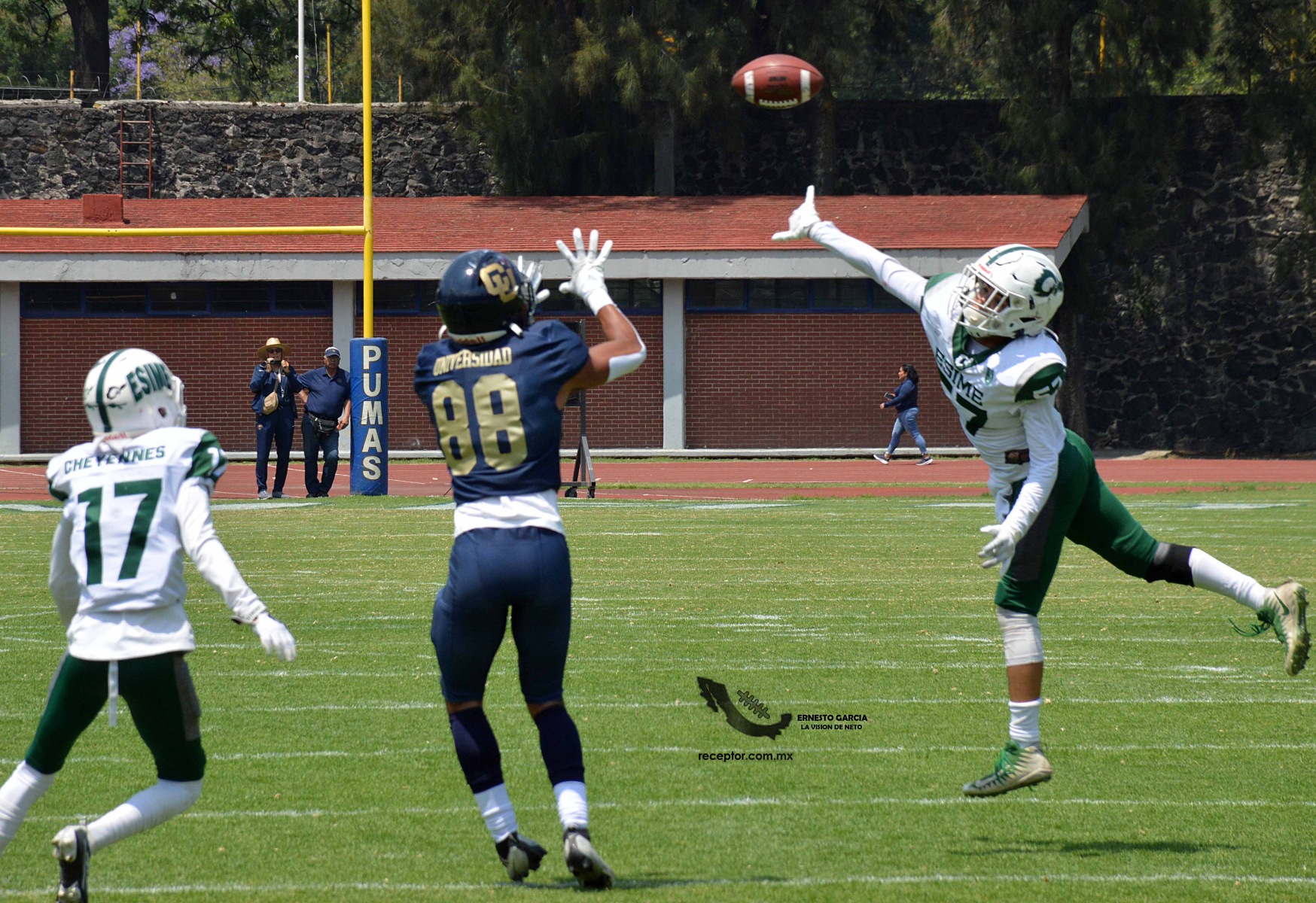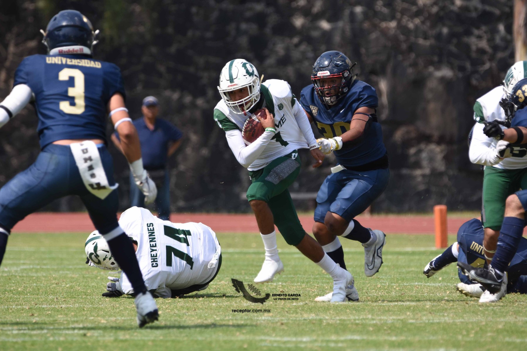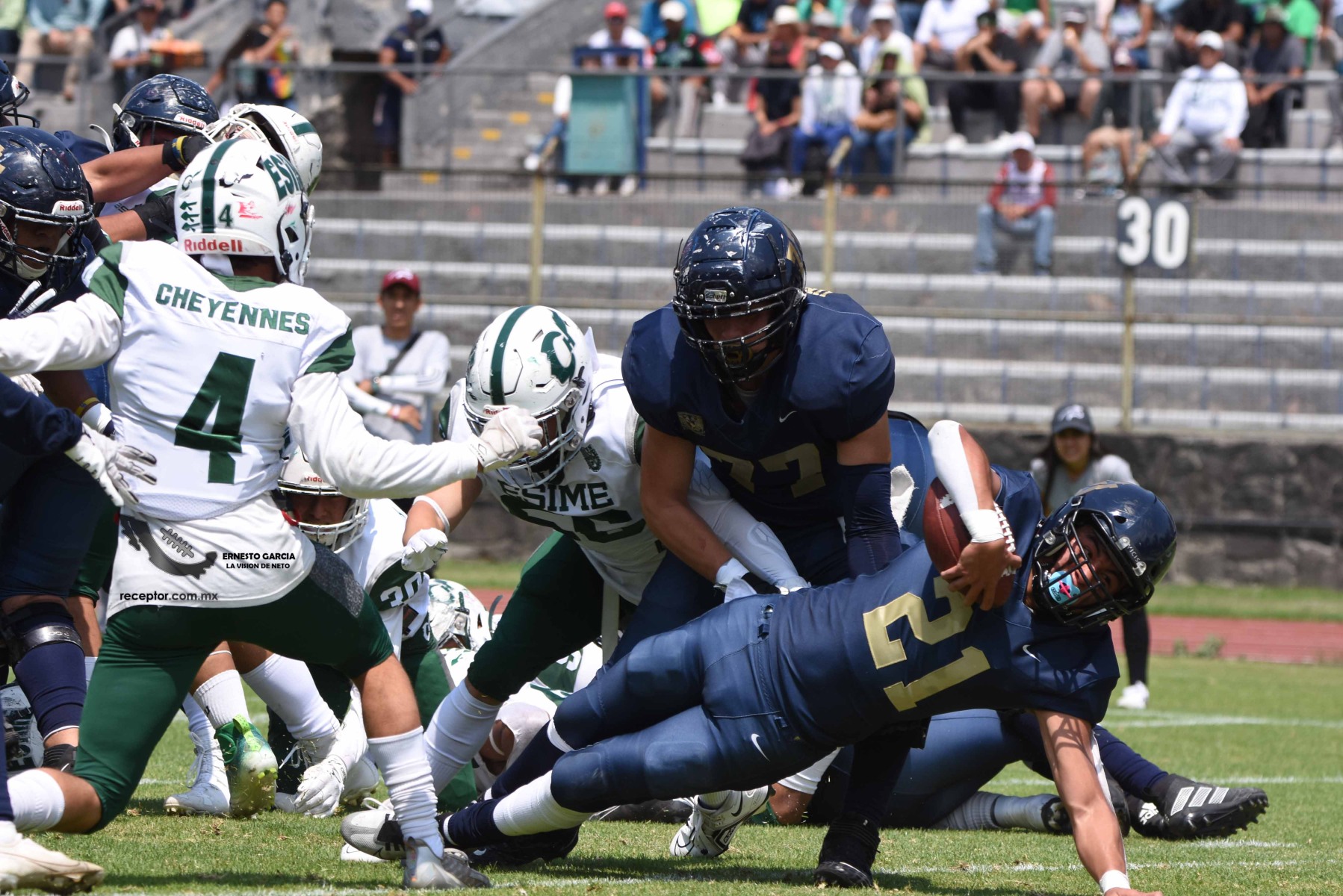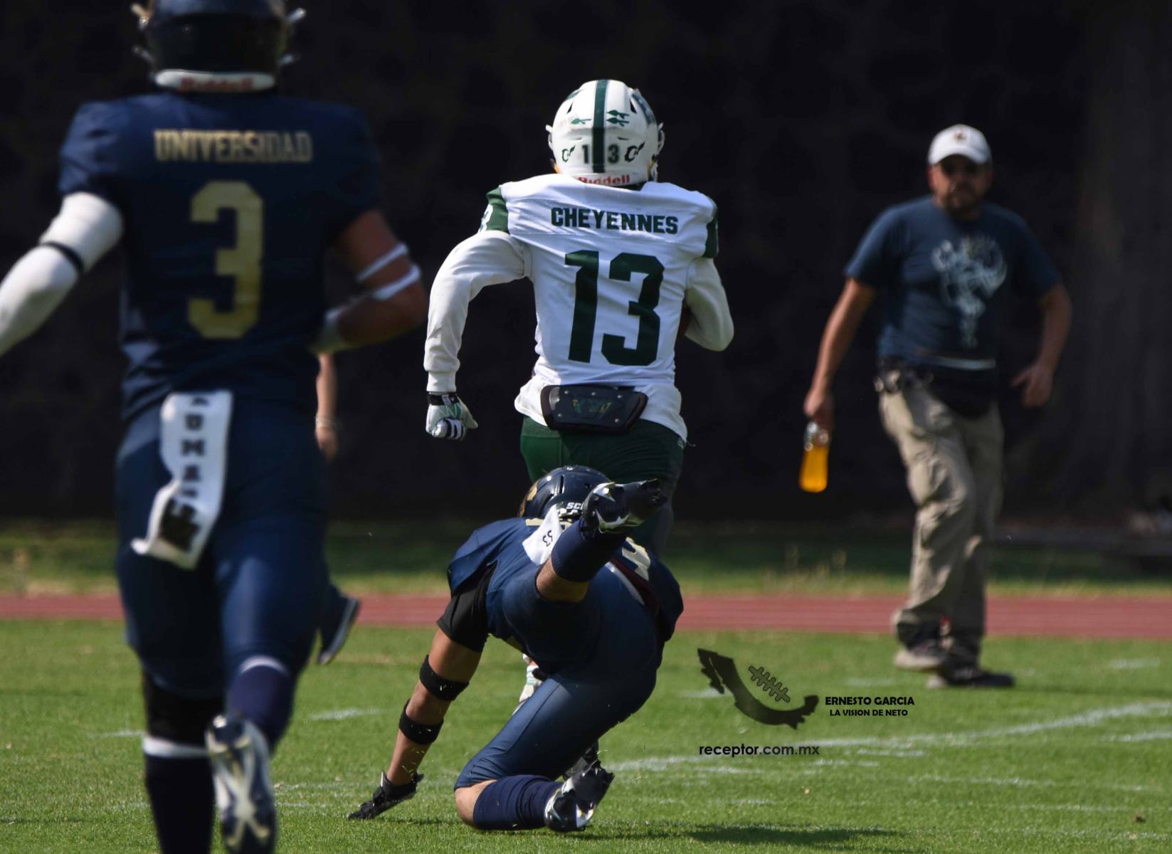 Los Cheyennes Zacatenco se metieron al «Tapatío» Méndez para darle a Pumas CU su segunda derrota de la temporada; la Tribu Verde se impuso 24-12, una exhibición redonda para los politécnicos. Checa las mejores fotografías del partido de la Semana 5 de la Intermedia ONEFA, a través de la lente de Ernesto García #LaVisiónDeNeto.