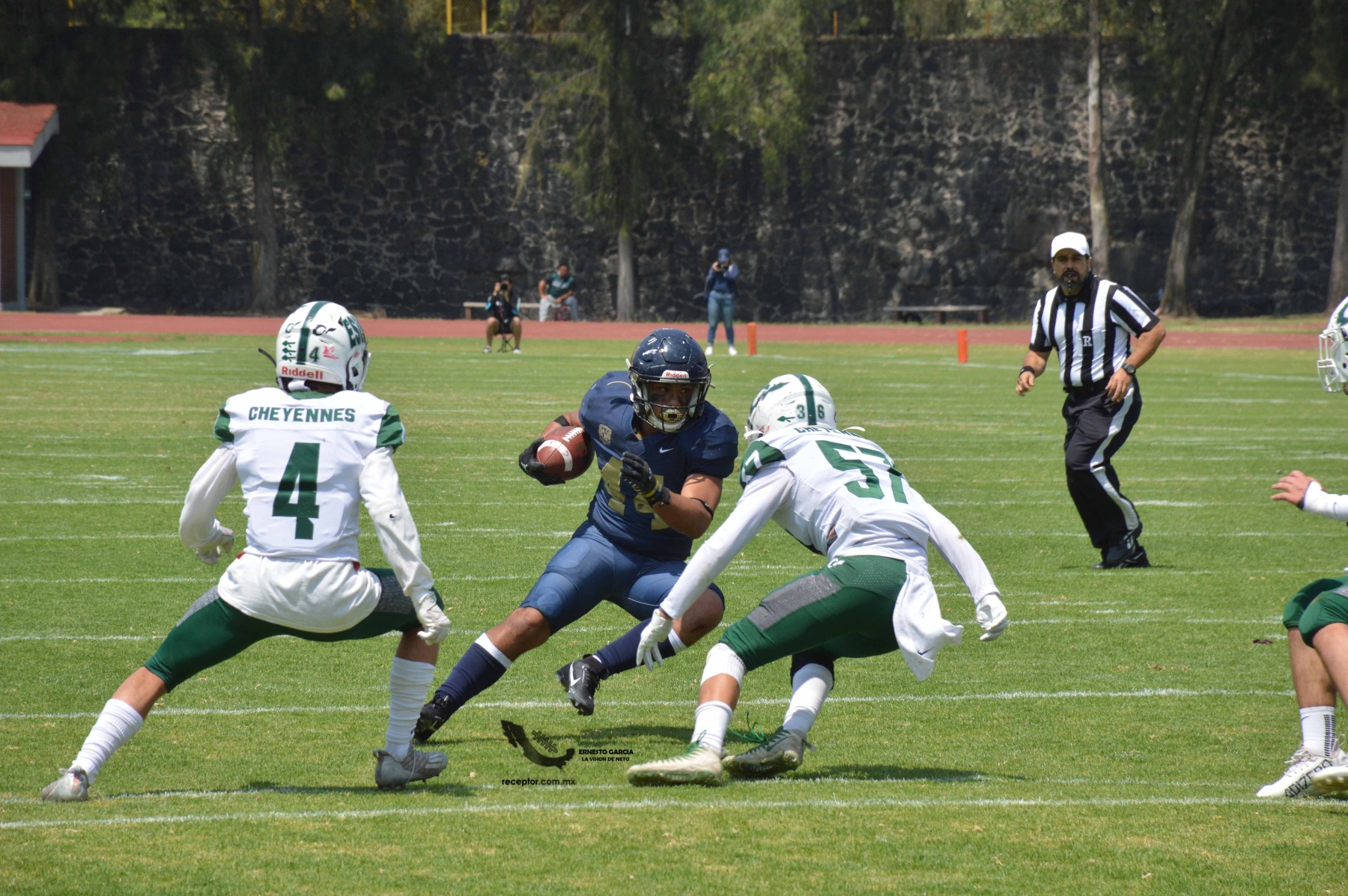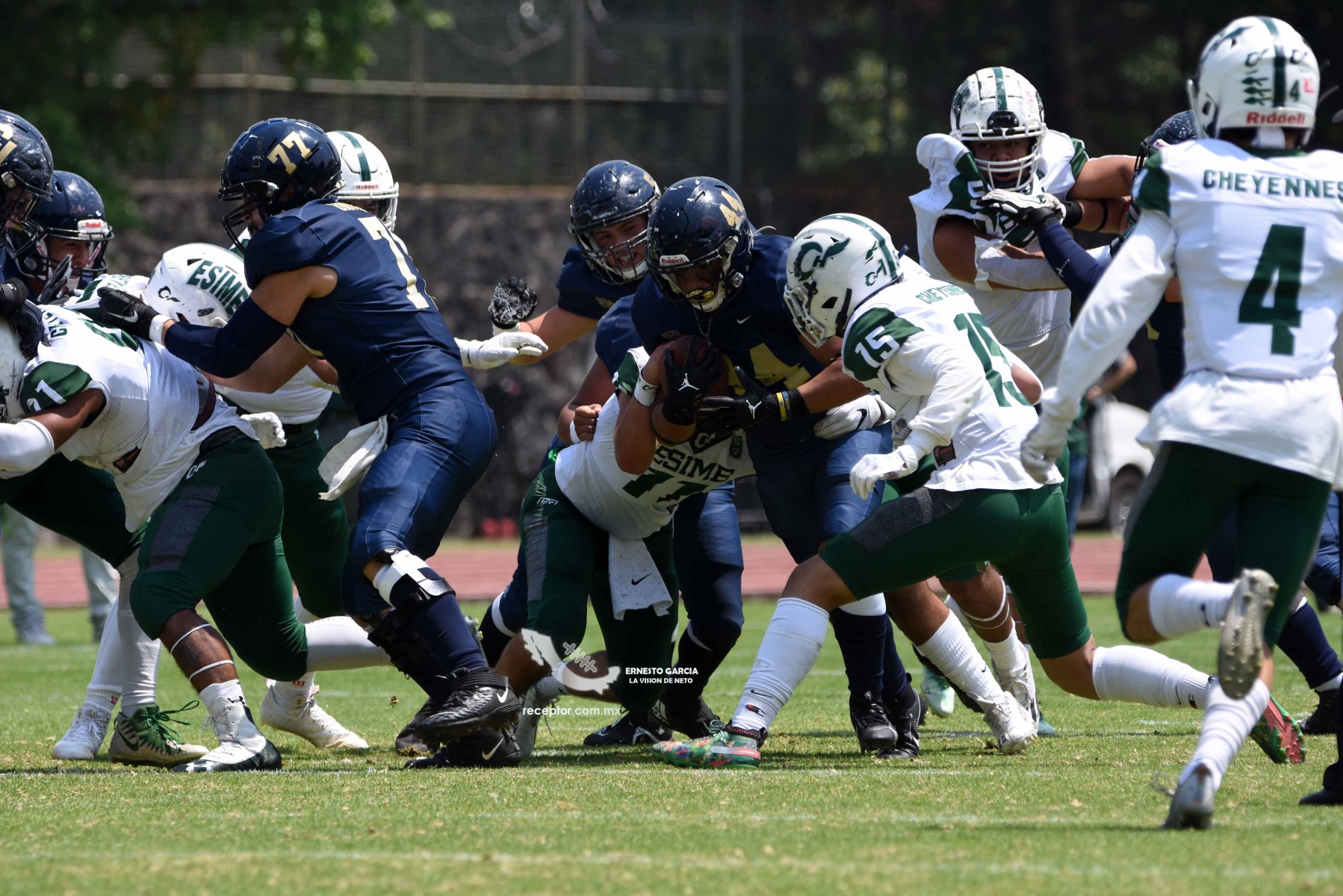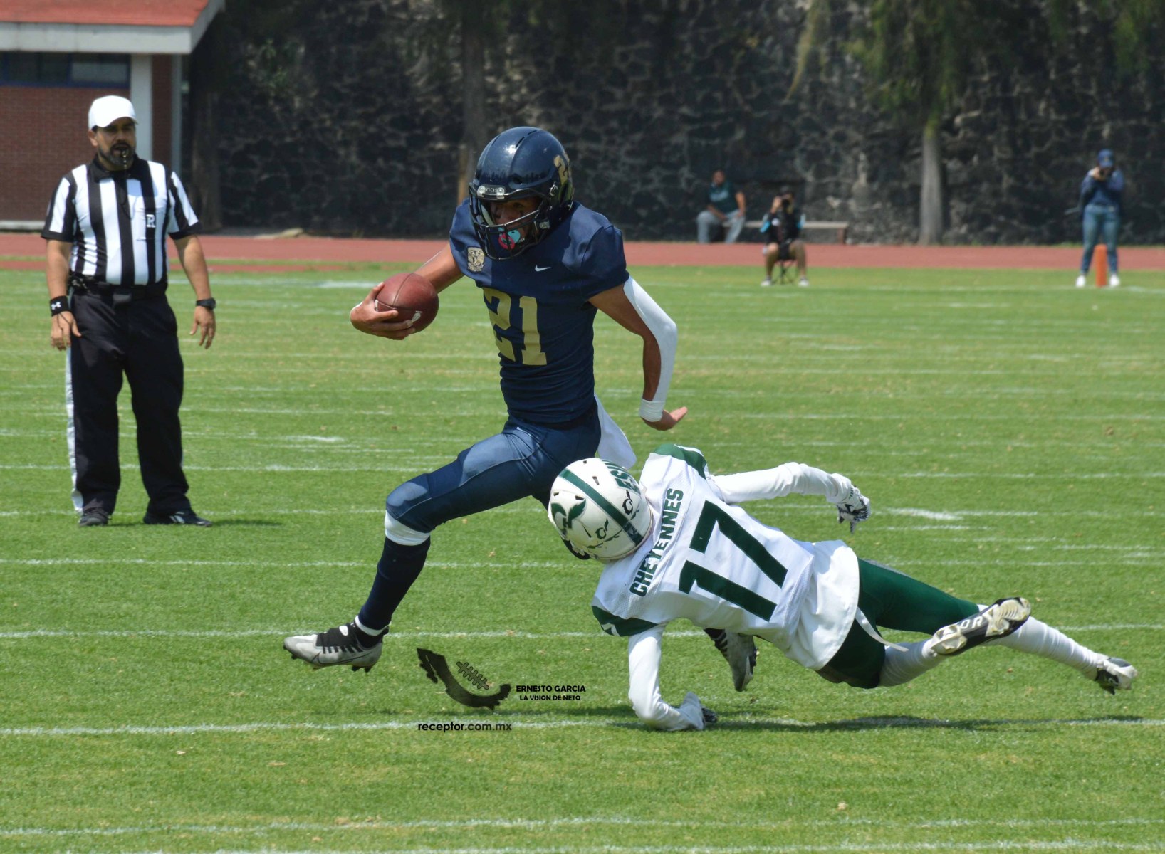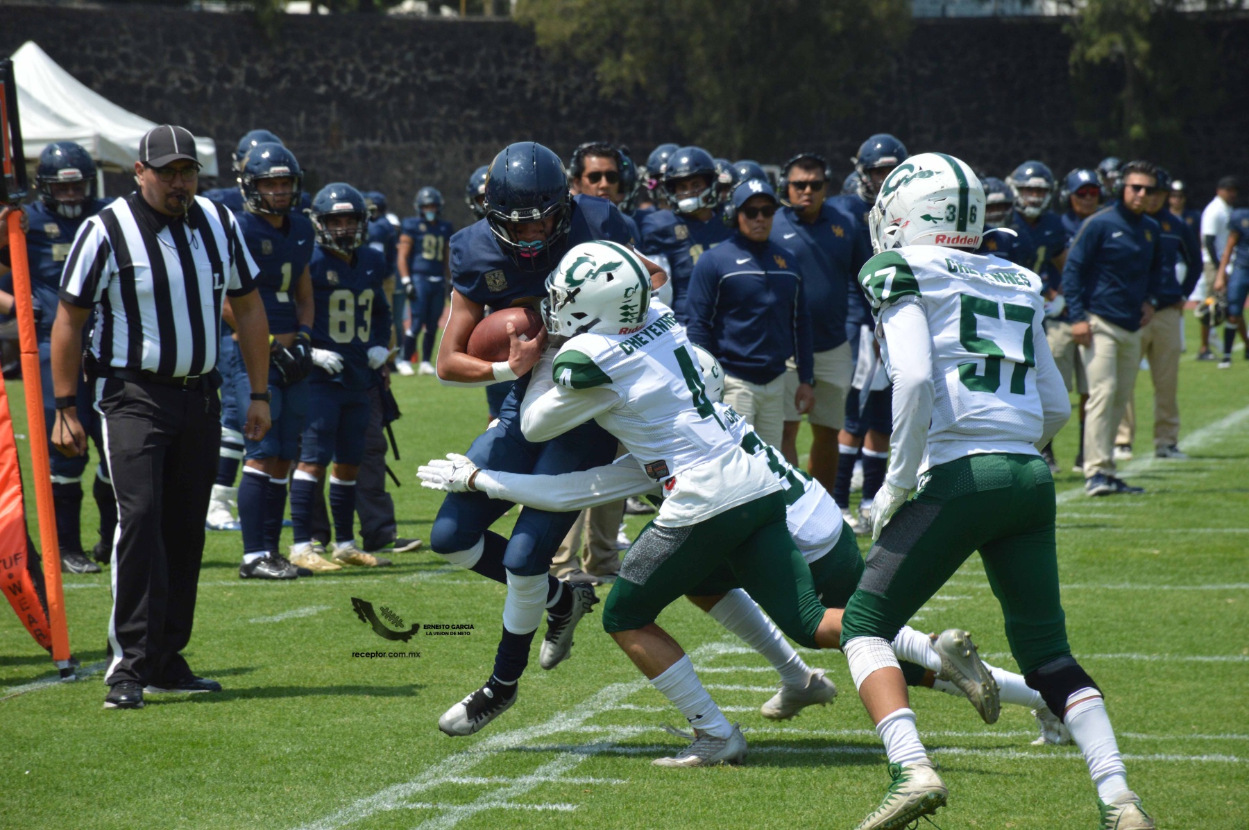 Los Cheyennes Zacatenco se metieron al «Tapatío» Méndez para darle a Pumas CU su segunda derrota de la temporada; la Tribu Verde se impuso 24-12, una exhibición redonda para los politécnicos. Checa las mejores fotografías del partido de la Semana 5 de la Intermedia ONEFA, a través de la lente de Ernesto García #LaVisiónDeNeto.