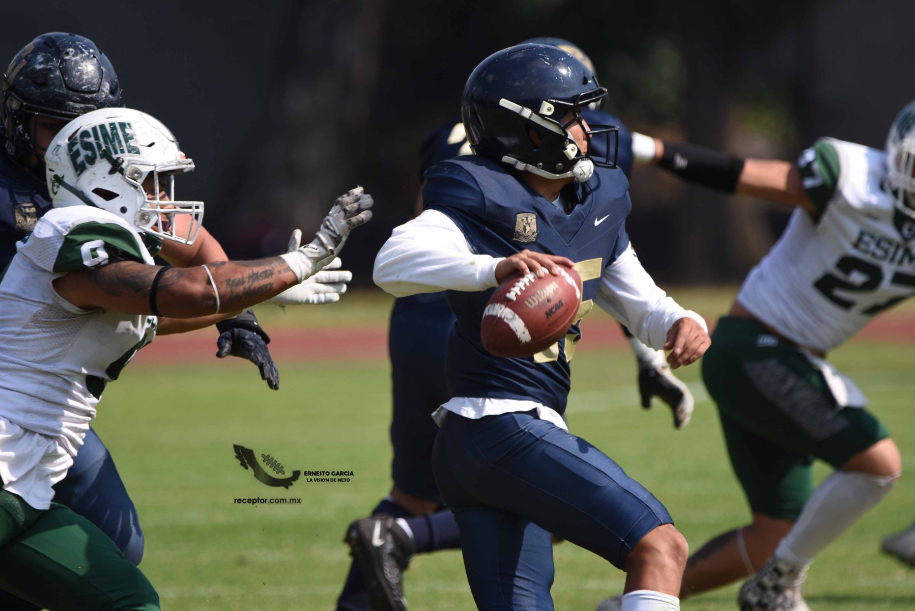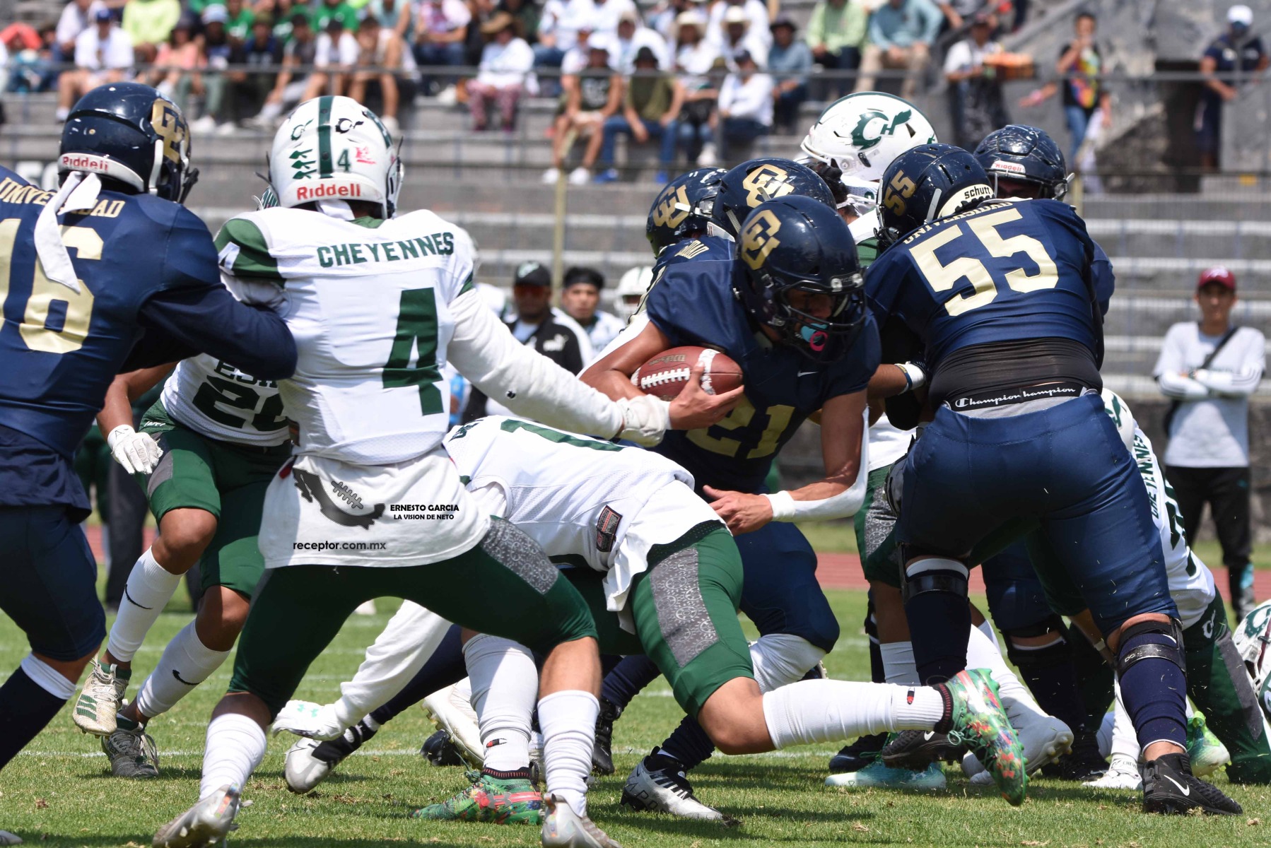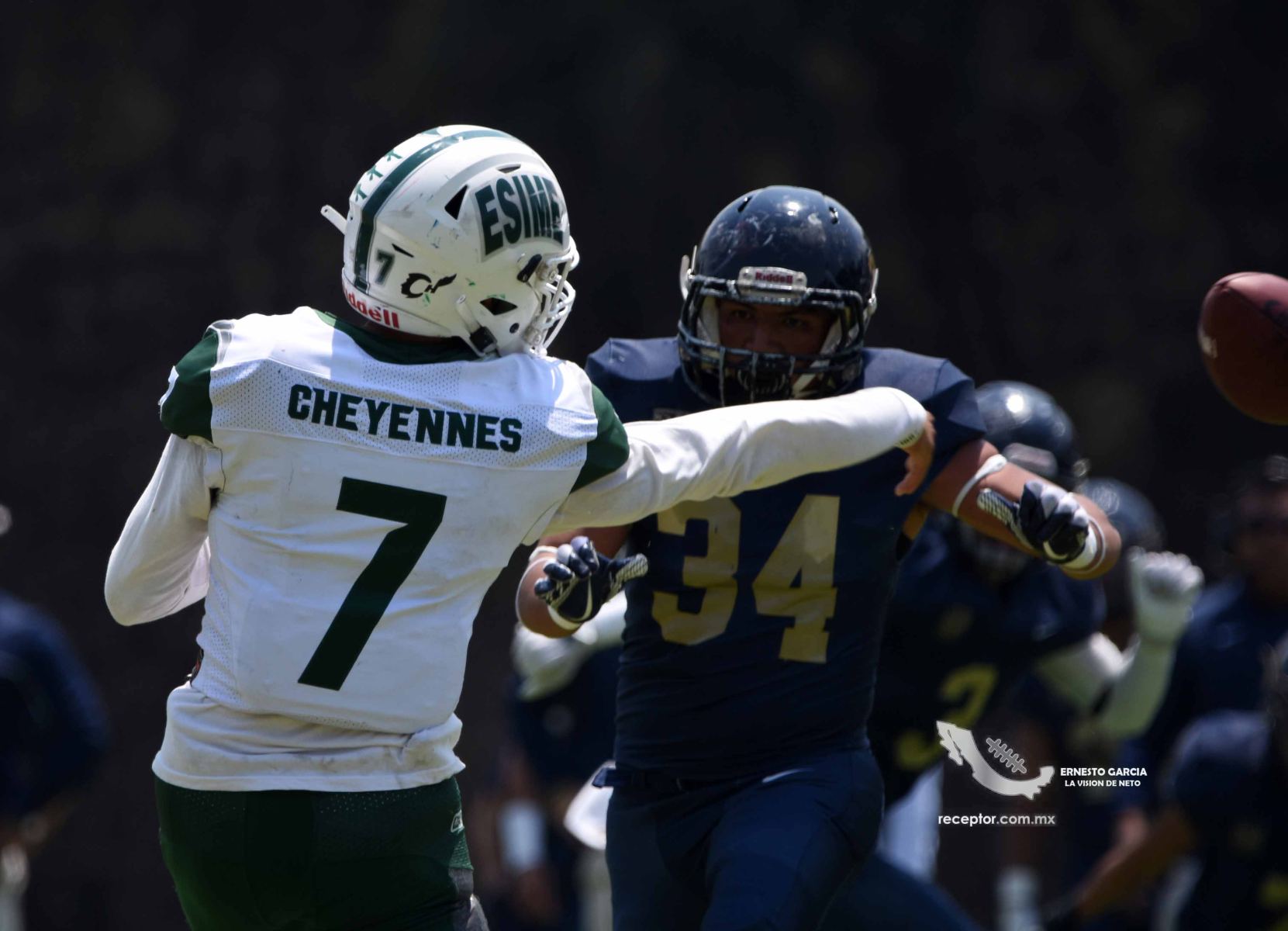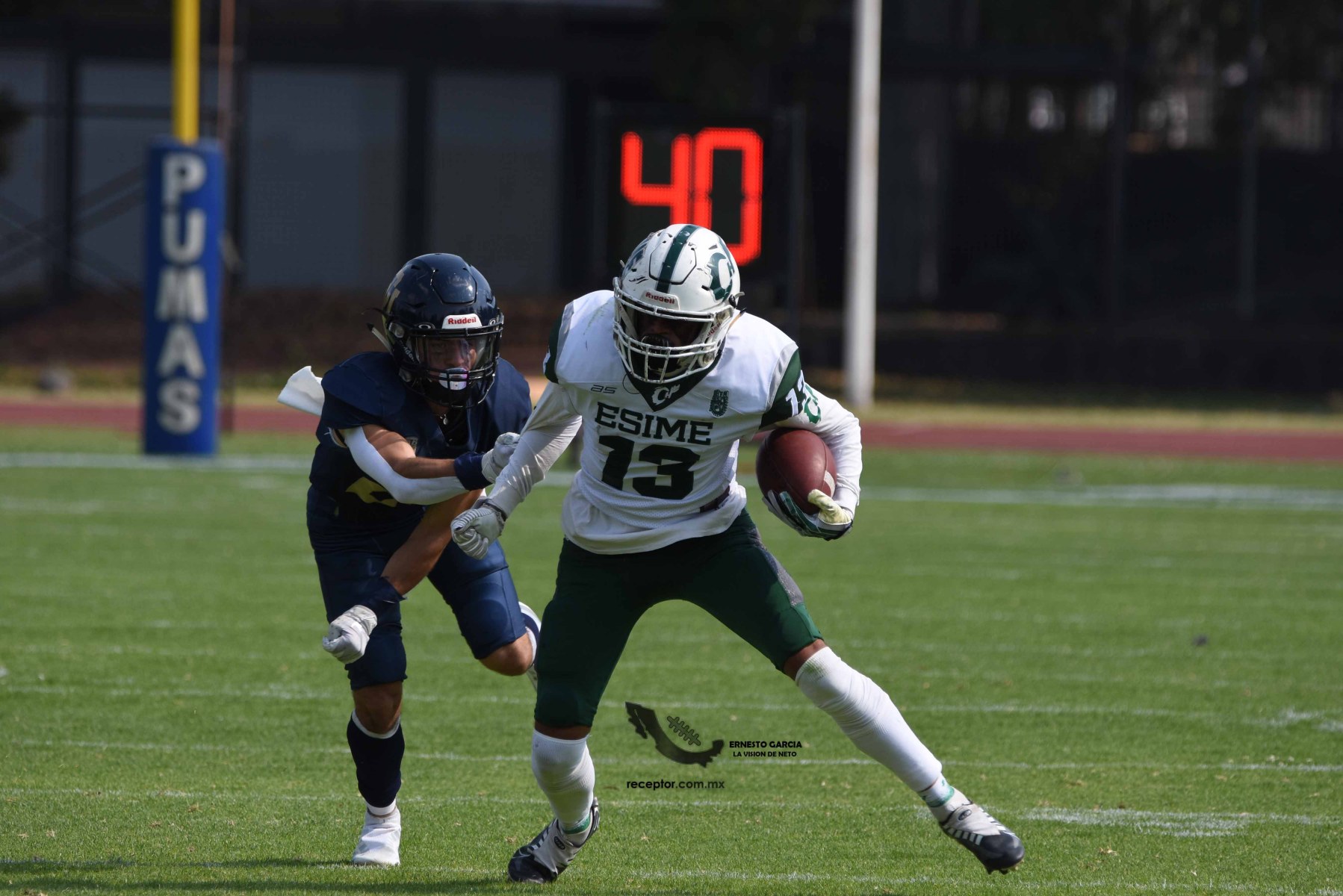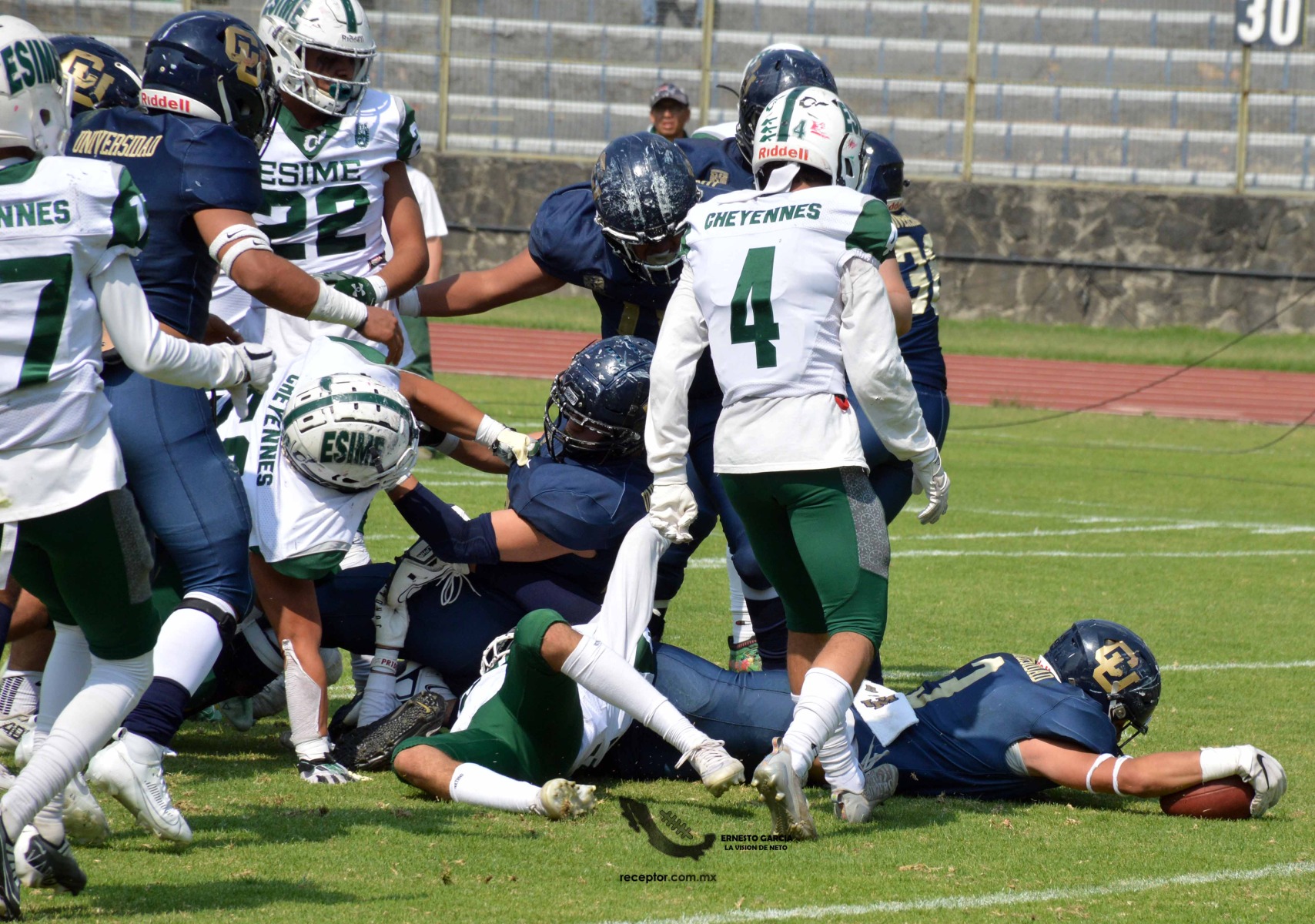 Los Cheyennes Zacatenco se metieron al «Tapatío» Méndez para darle a Pumas CU su segunda derrota de la temporada; la Tribu Verde se impuso 24-12, una exhibición redonda para los politécnicos. Checa las mejores fotografías del partido de la Semana 5 de la Intermedia ONEFA, a través de la lente de Ernesto García #LaVisiónDeNeto.
