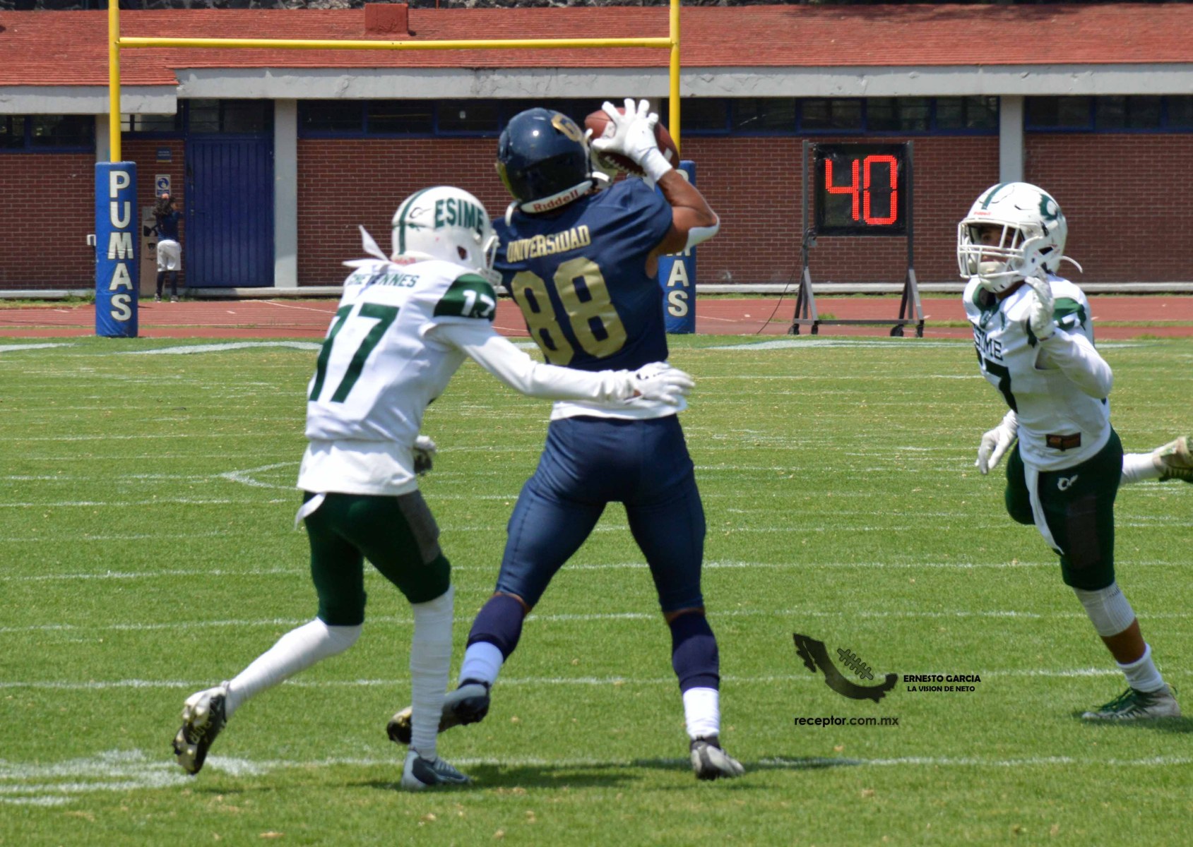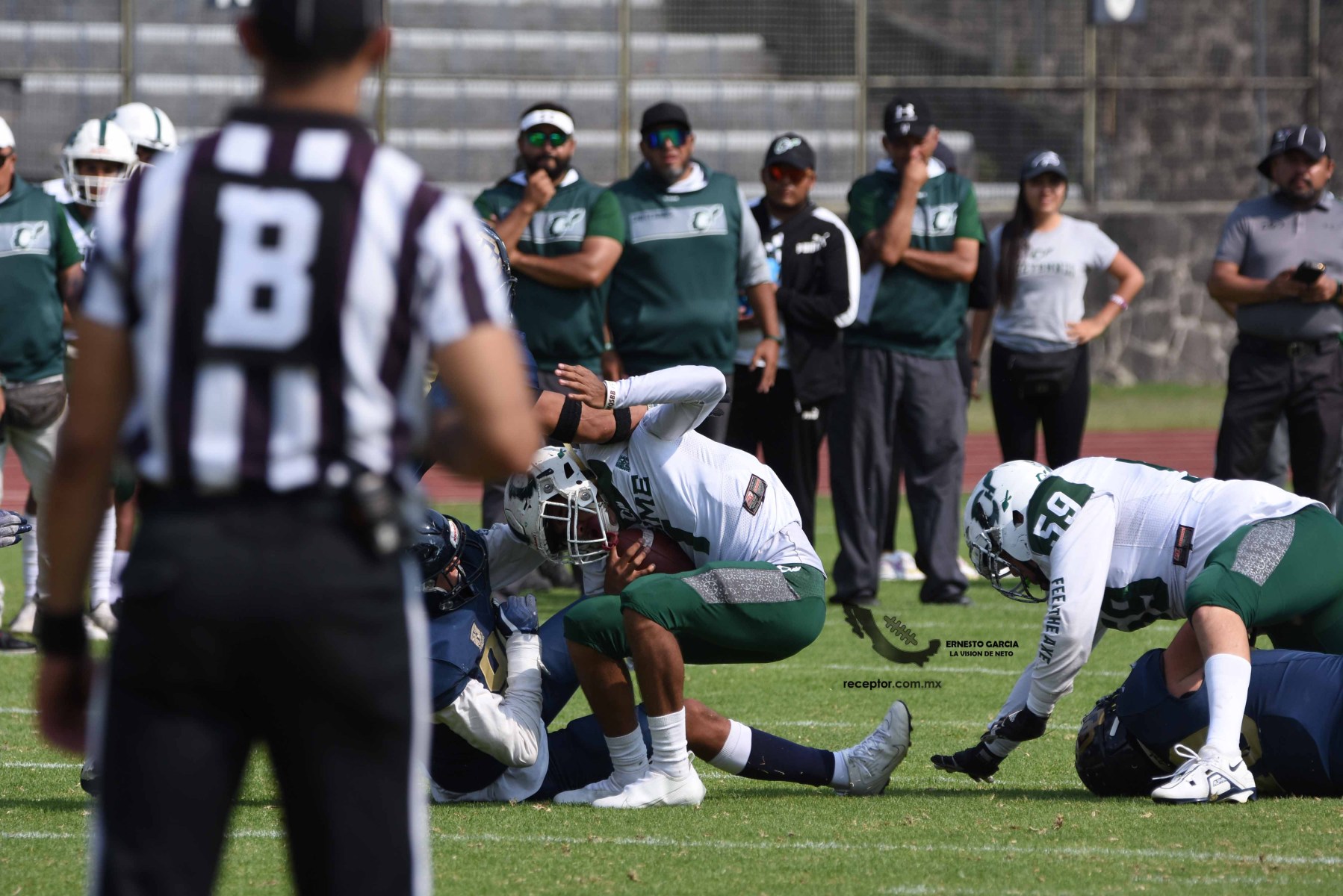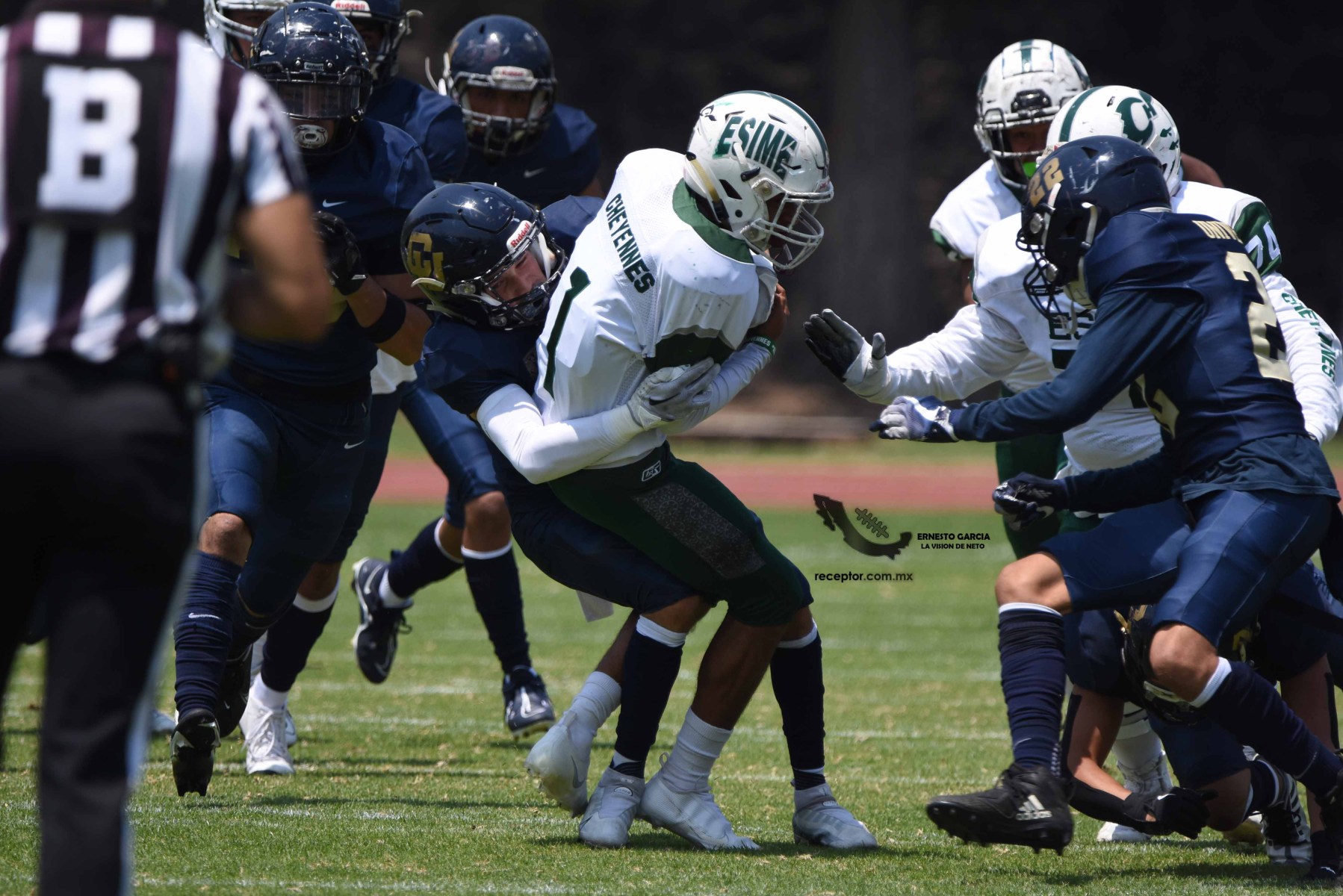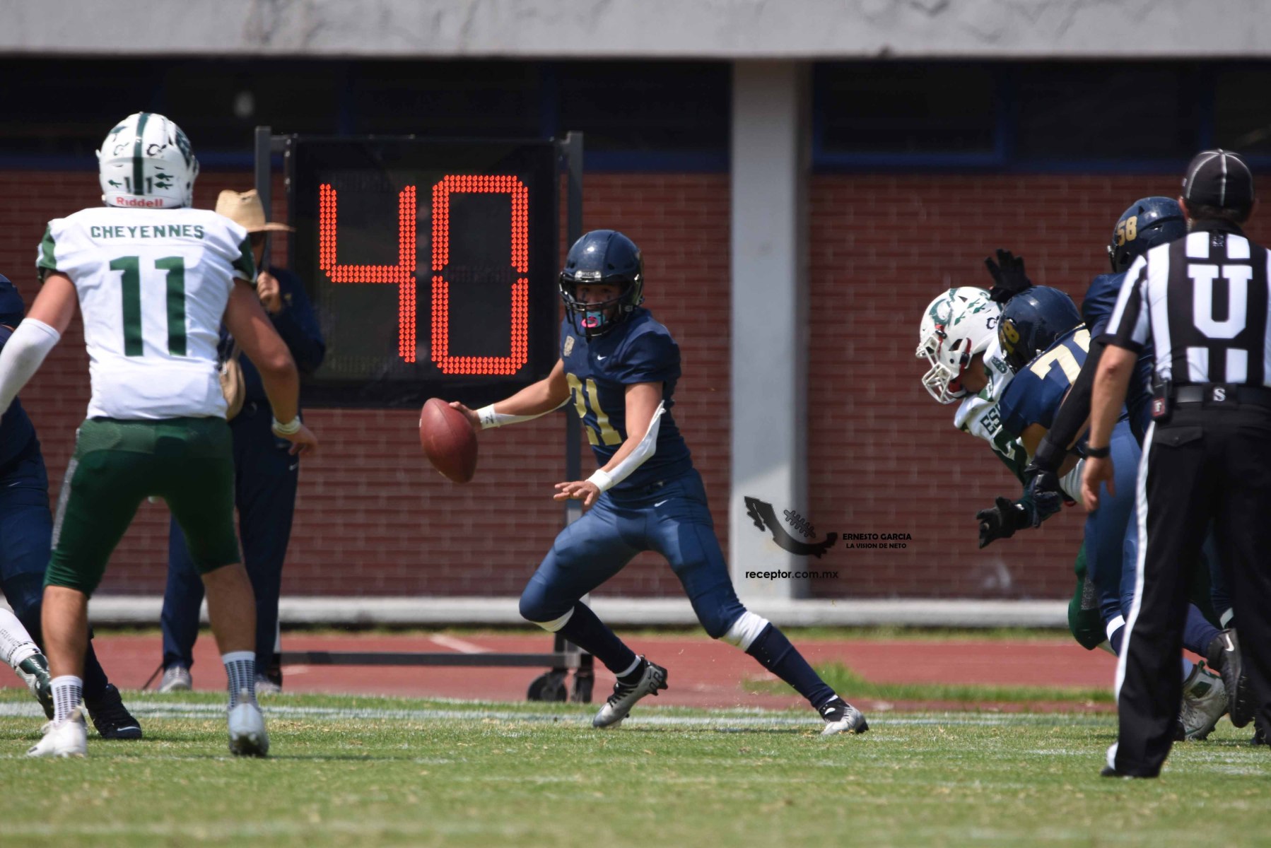 Los Cheyennes Zacatenco se metieron al «Tapatío» Méndez para darle a Pumas CU su segunda derrota de la temporada; la Tribu Verde se impuso 24-12, una exhibición redonda para los politécnicos. Checa las mejores fotografías del partido de la Semana 5 de la Intermedia ONEFA, a través de la lente de Ernesto García #LaVisiónDeNeto.