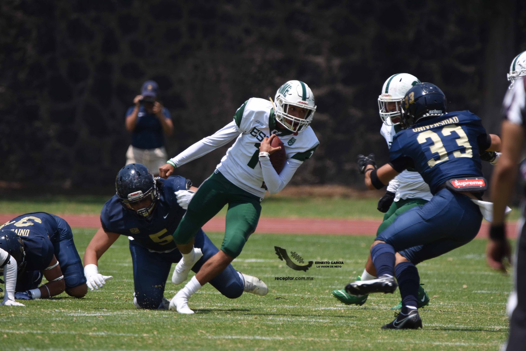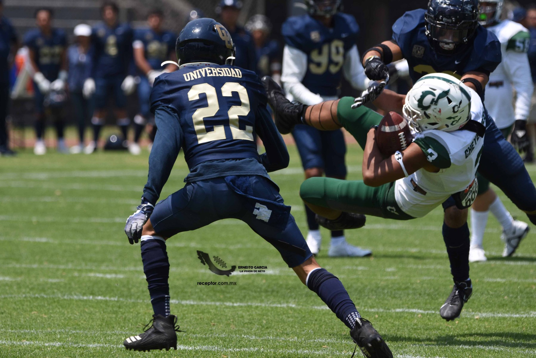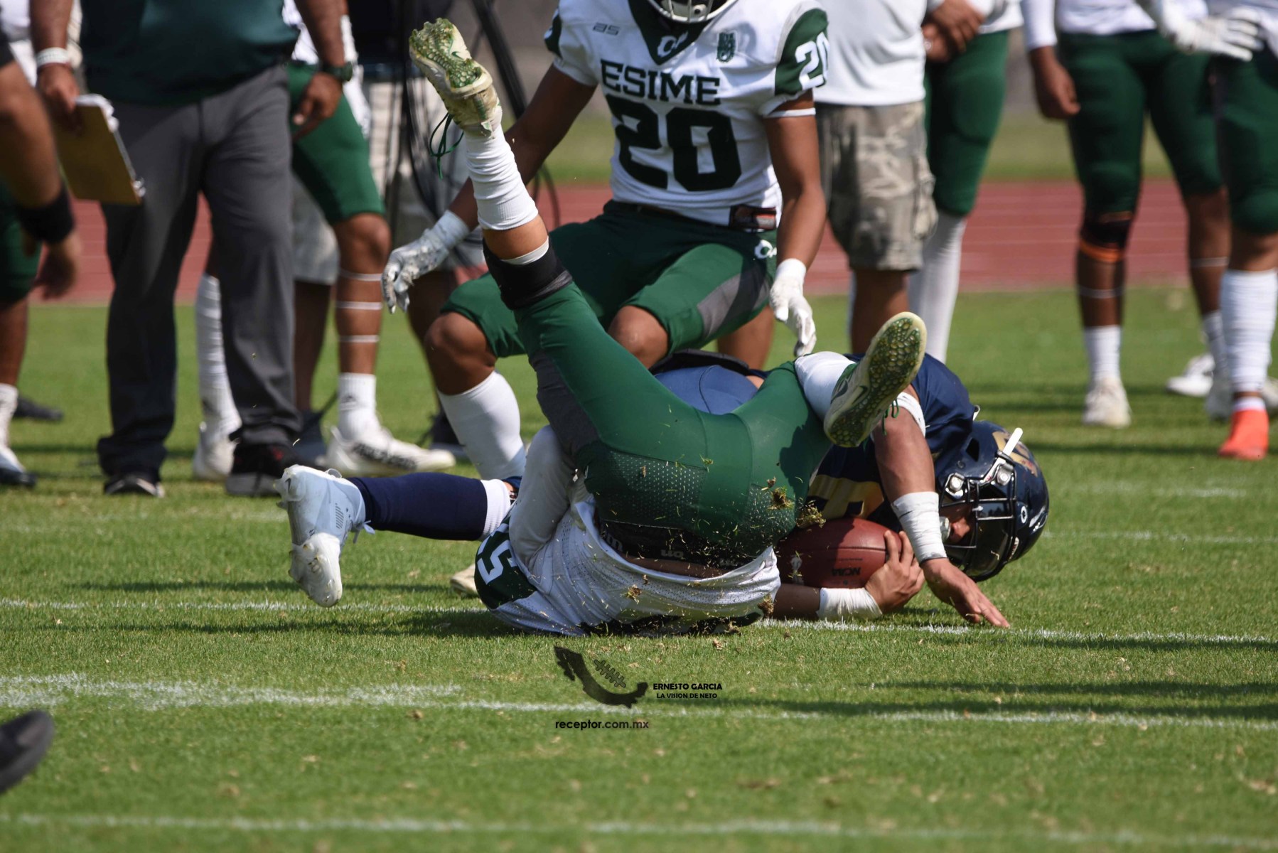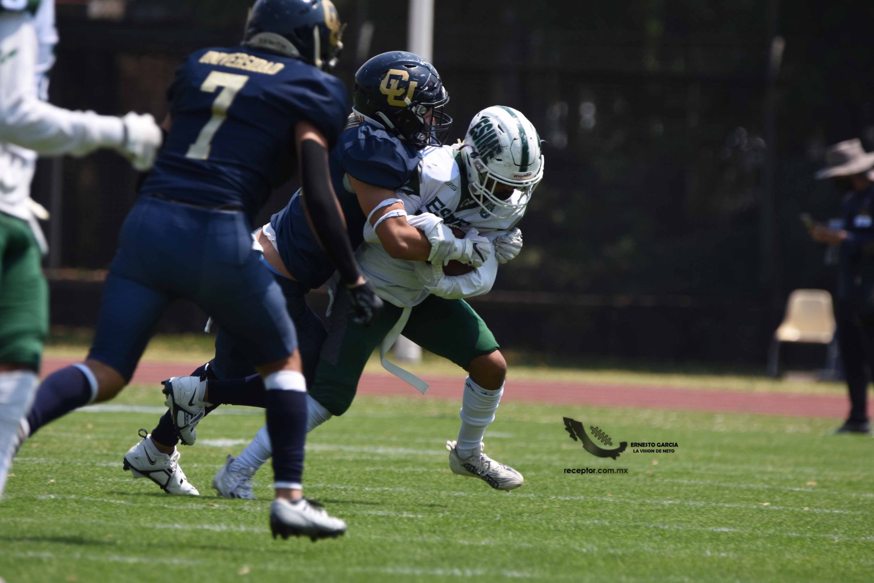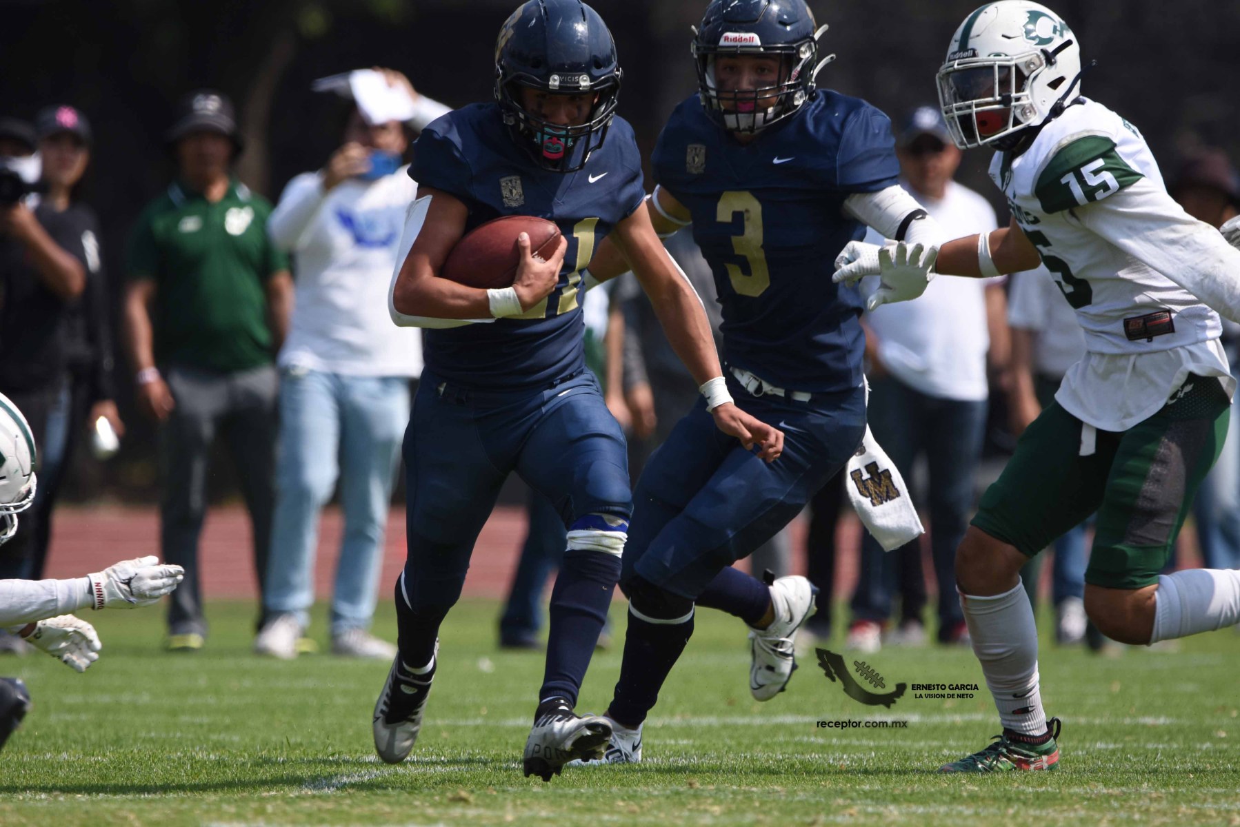 Los Cheyennes Zacatenco se metieron al «Tapatío» Méndez para darle a Pumas CU su segunda derrota de la temporada; la Tribu Verde se impuso 24-12, una exhibición redonda para los politécnicos. Checa las mejores fotografías del partido de la Semana 5 de la Intermedia ONEFA, a través de la lente de Ernesto García #LaVisiónDeNeto.