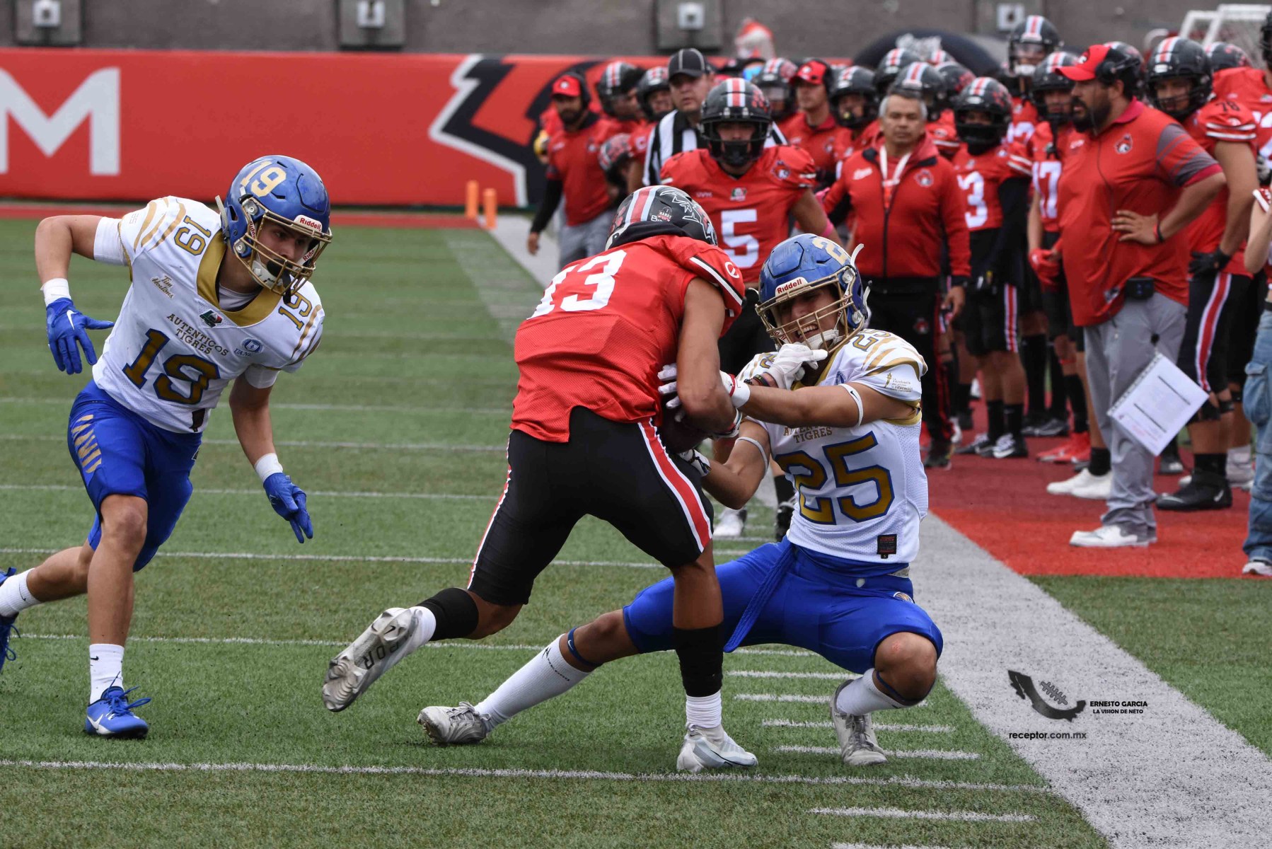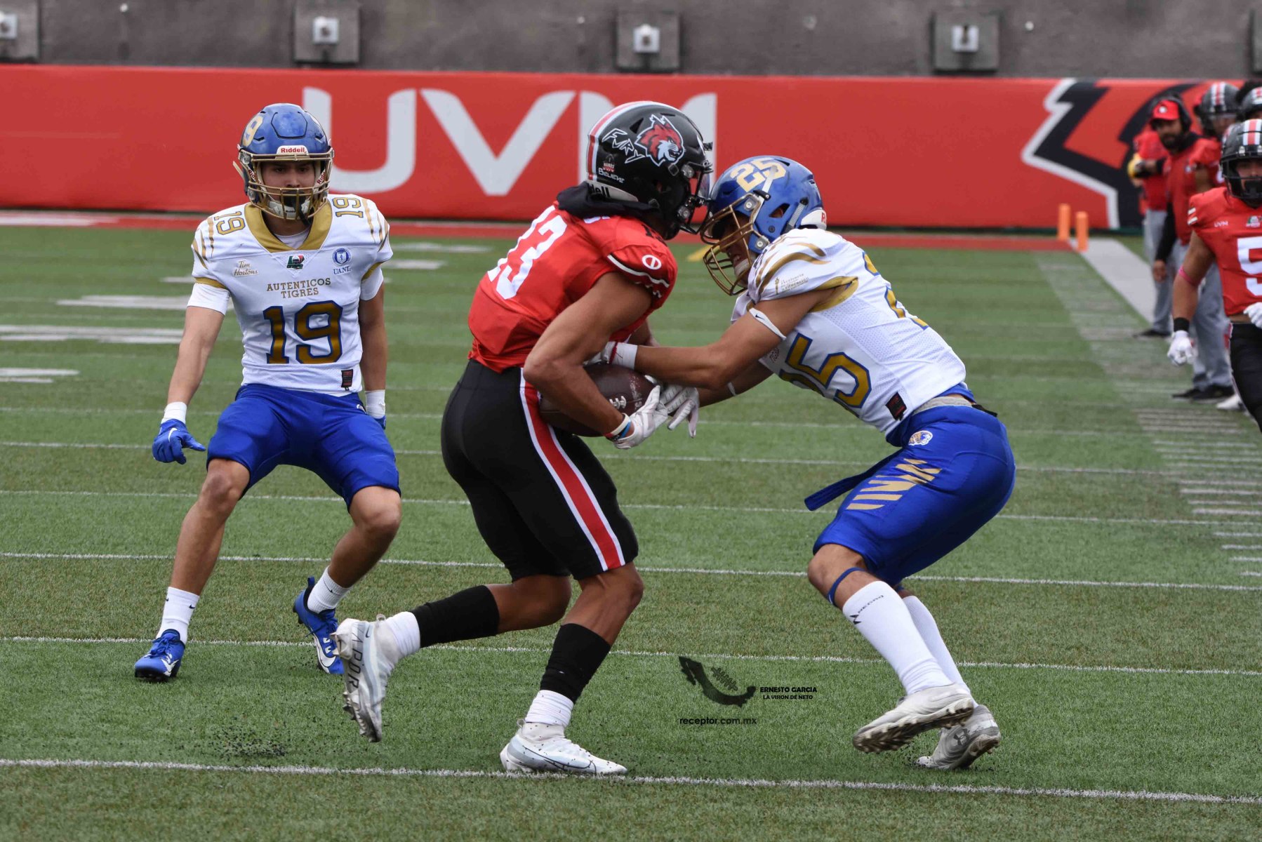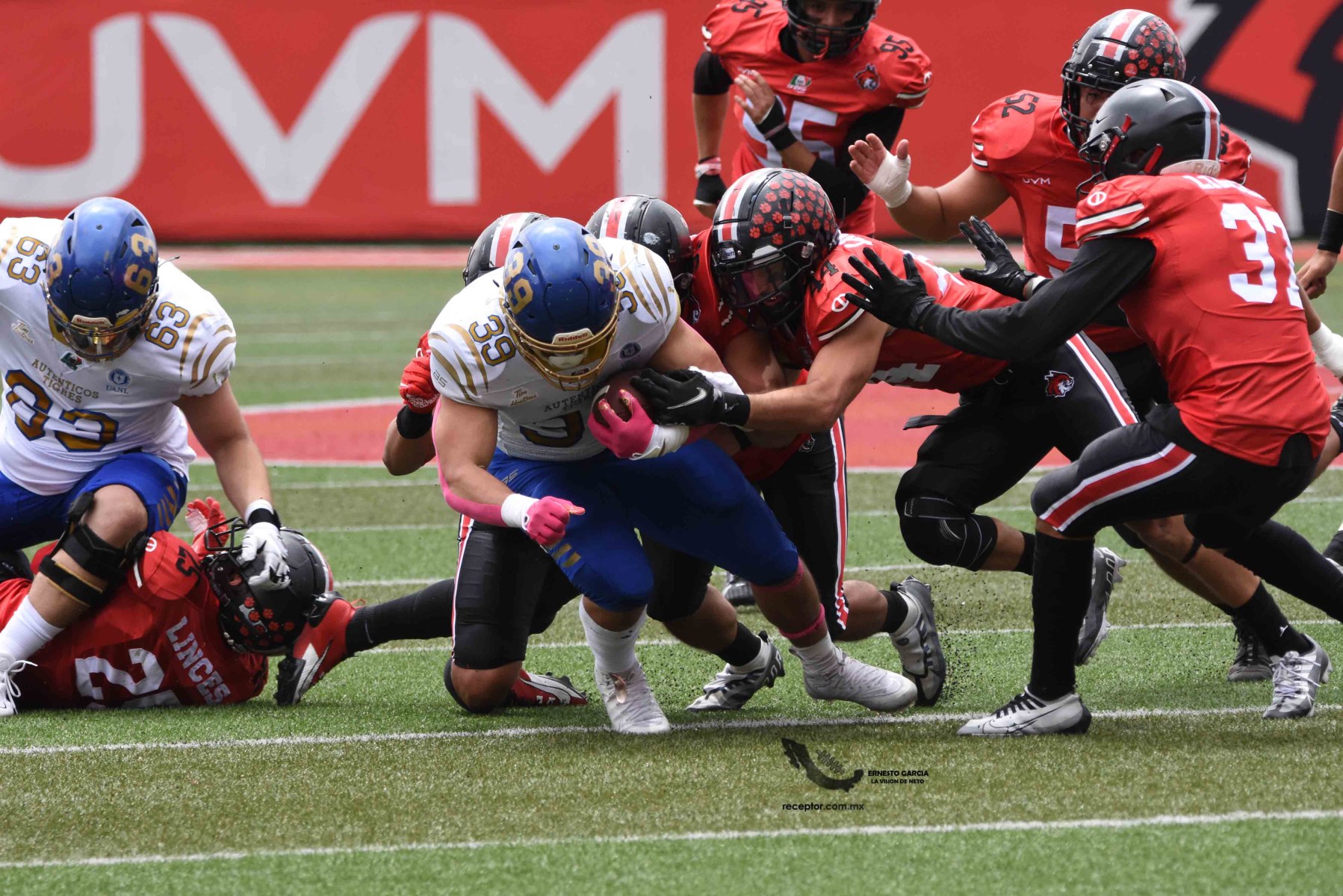 Auténticos Tigres salió del norte del país (y Houston) por primera vez en la temporada 2023 para meterse a la UVM y vencer a los Linces que presentaron más pelea de lo que el marcador representa. Checa las mejores fotos de este encuentro de la Semana 5 de los 14 Grandes de la Liga Mayor ONEFA, cortesía de Ernesto García, La Visión de Neto.