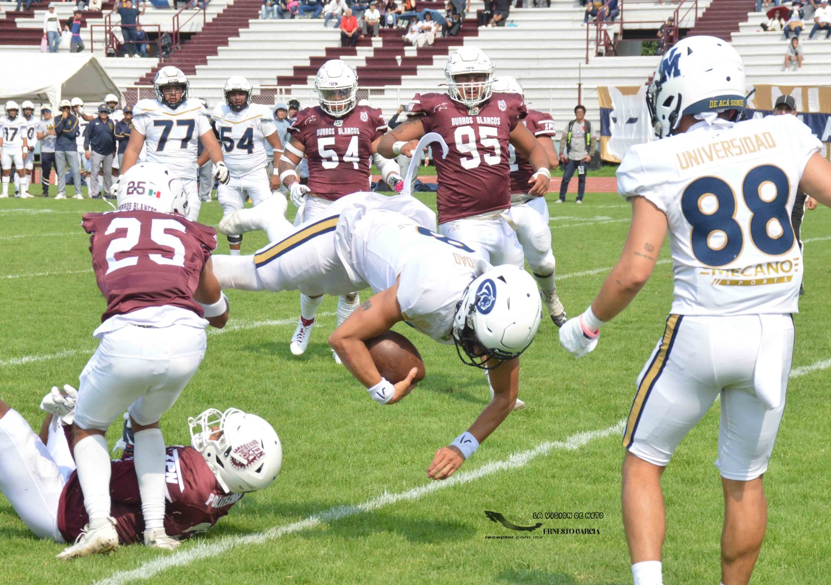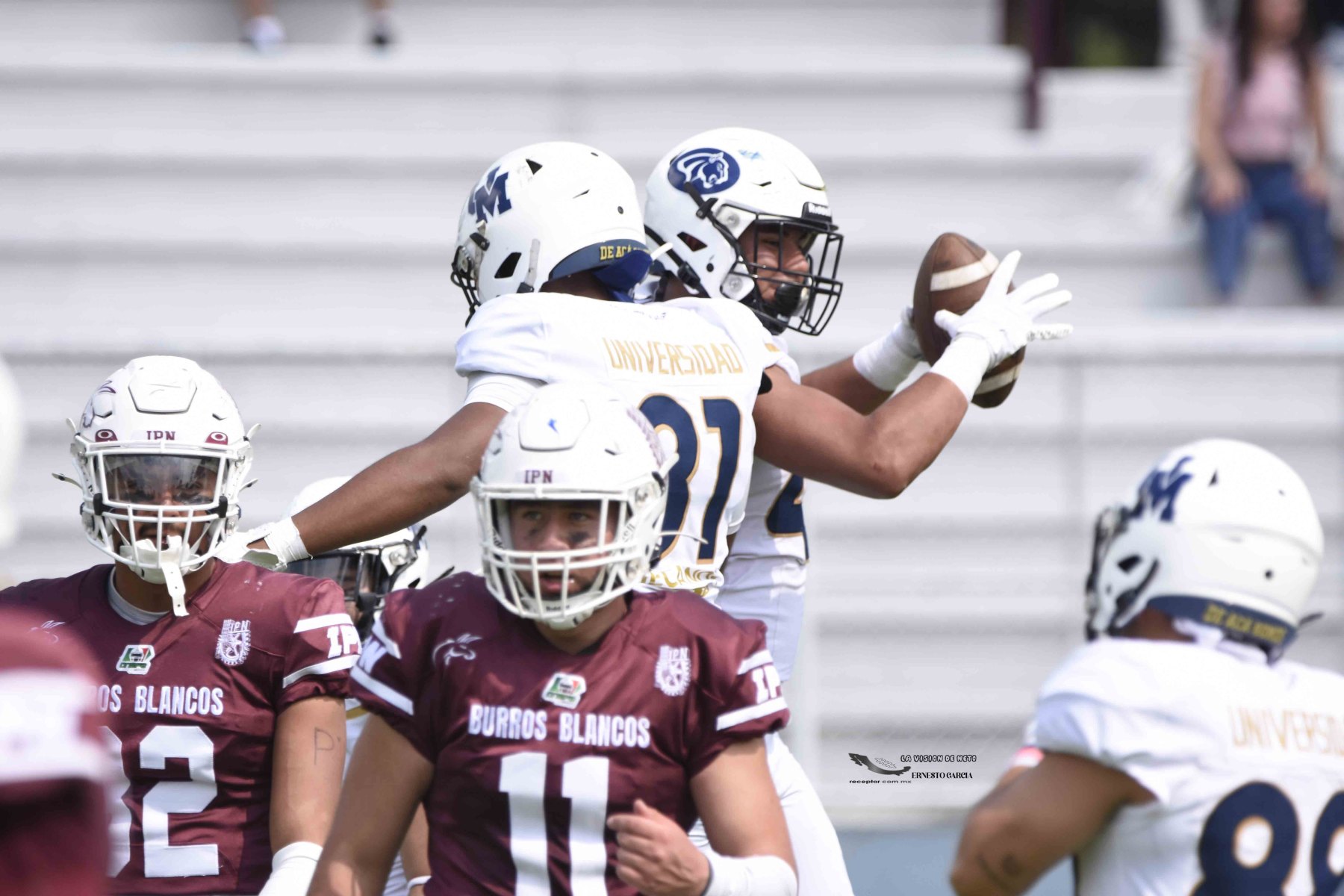 Burros Blancos estaba urgido por ganar y caían 14-0 contra Pumas Acatlán, entonces vinieron 17 puntos sin respuesta para alzarse con su primera victoria en la temporada 2024 de la Liga Mayor ONEFA. Emocionante remontada en Clásico Poli-Uni, a través de la lente de Ernesto García, La Visión de Neto.