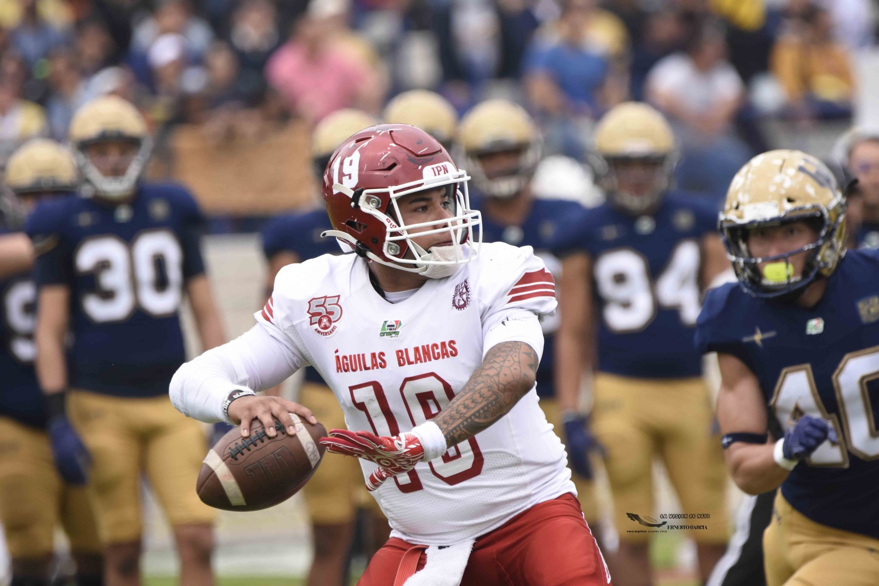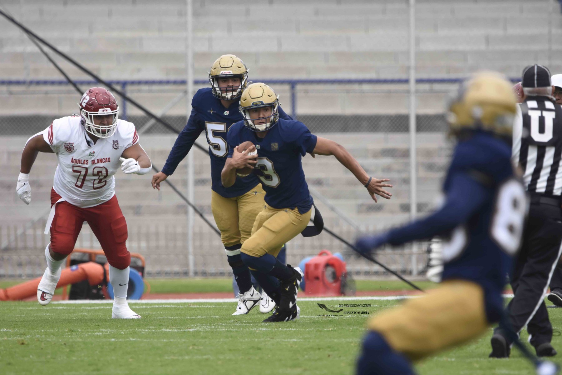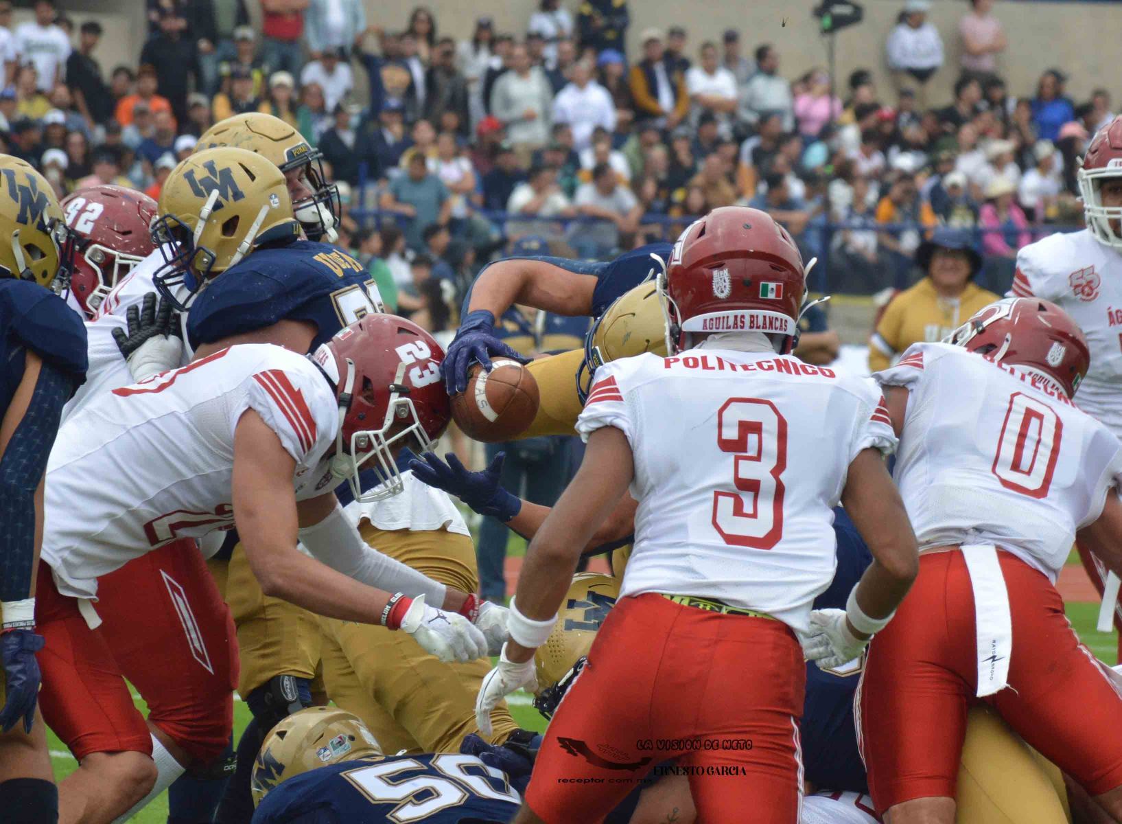 La entrada más grande del 2024 se registró en el Estadio Olímpico Universitario, donde arriba de 42,000 personas se dieron cita para ver cómo Pumas CU se impuso 35-10 a las Águilas Blancas IPN. Las mejores imágenes del partido de la Semana 5 de la Liga Mayor ONEFA 2024 a través de la lente de Ernesto García, La Visión de Neto.
