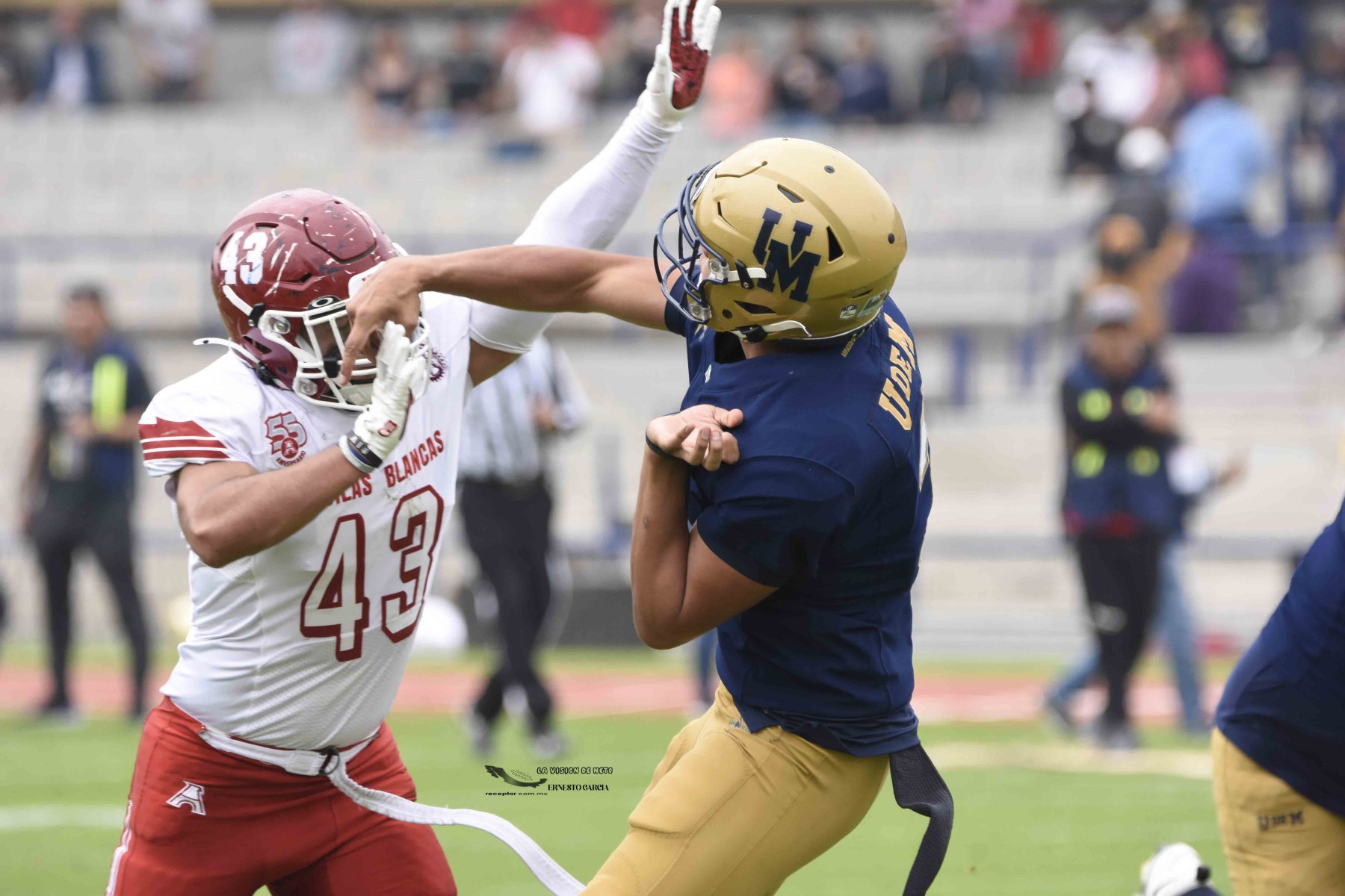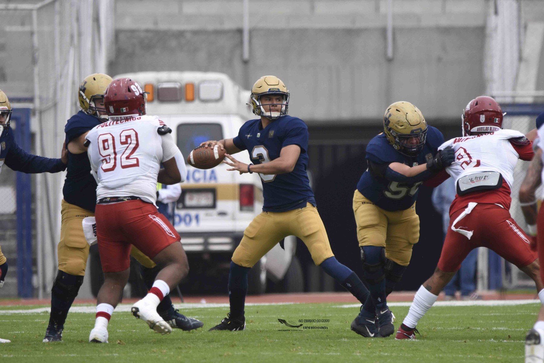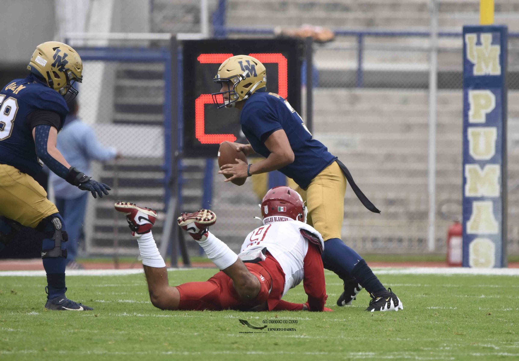 La entrada más grande del 2024 se registró en el Estadio Olímpico Universitario, donde arriba de 42,000 personas se dieron cita para ver cómo Pumas CU se impuso 35-10 a las Águilas Blancas IPN. Las mejores imágenes del partido de la Semana 5 de la Liga Mayor ONEFA 2024 a través de la lente de Ernesto García, La Visión de Neto.