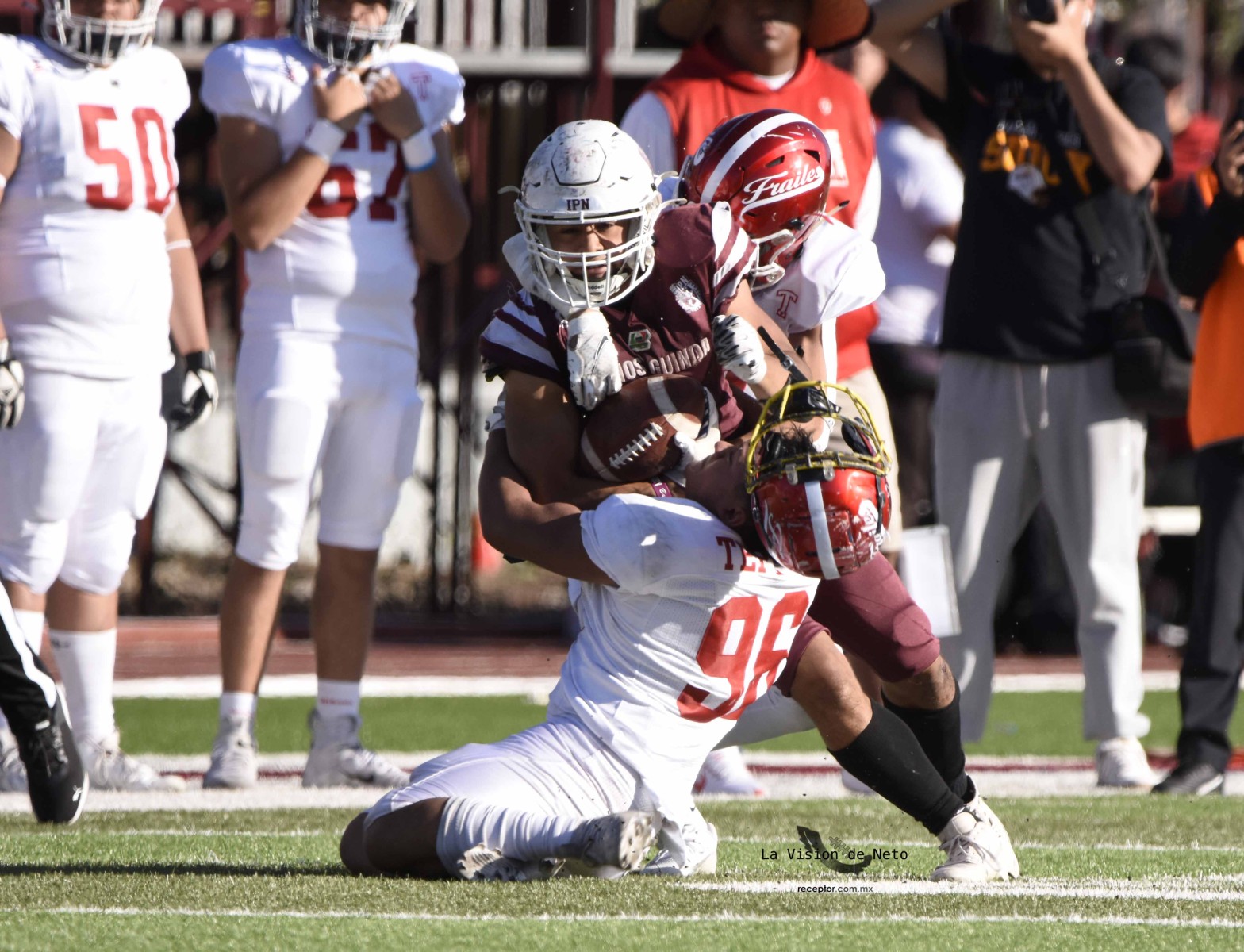 Búhos Guinda recibió a Frailes del Tepeyac en el Casco de Santo Tomás en partido de urgencia para ambas escuadras en acciones de la Conferencia Mario Borges de la Intermedia ONEFA 2025. Con final dramático, los visitantes se impusieron 13-10 a los politécnicos. Checa las mejores imágenes cortesía de la mejor galería de la red, La Visión de Neto.