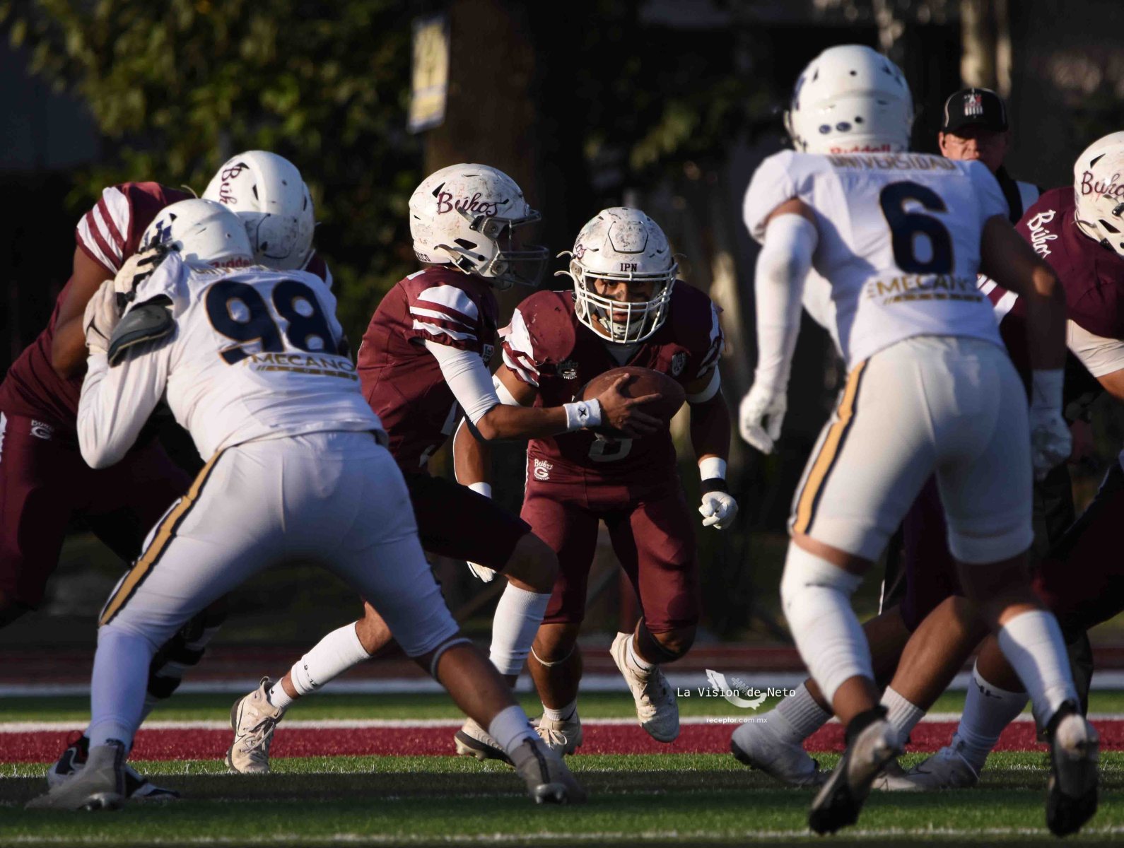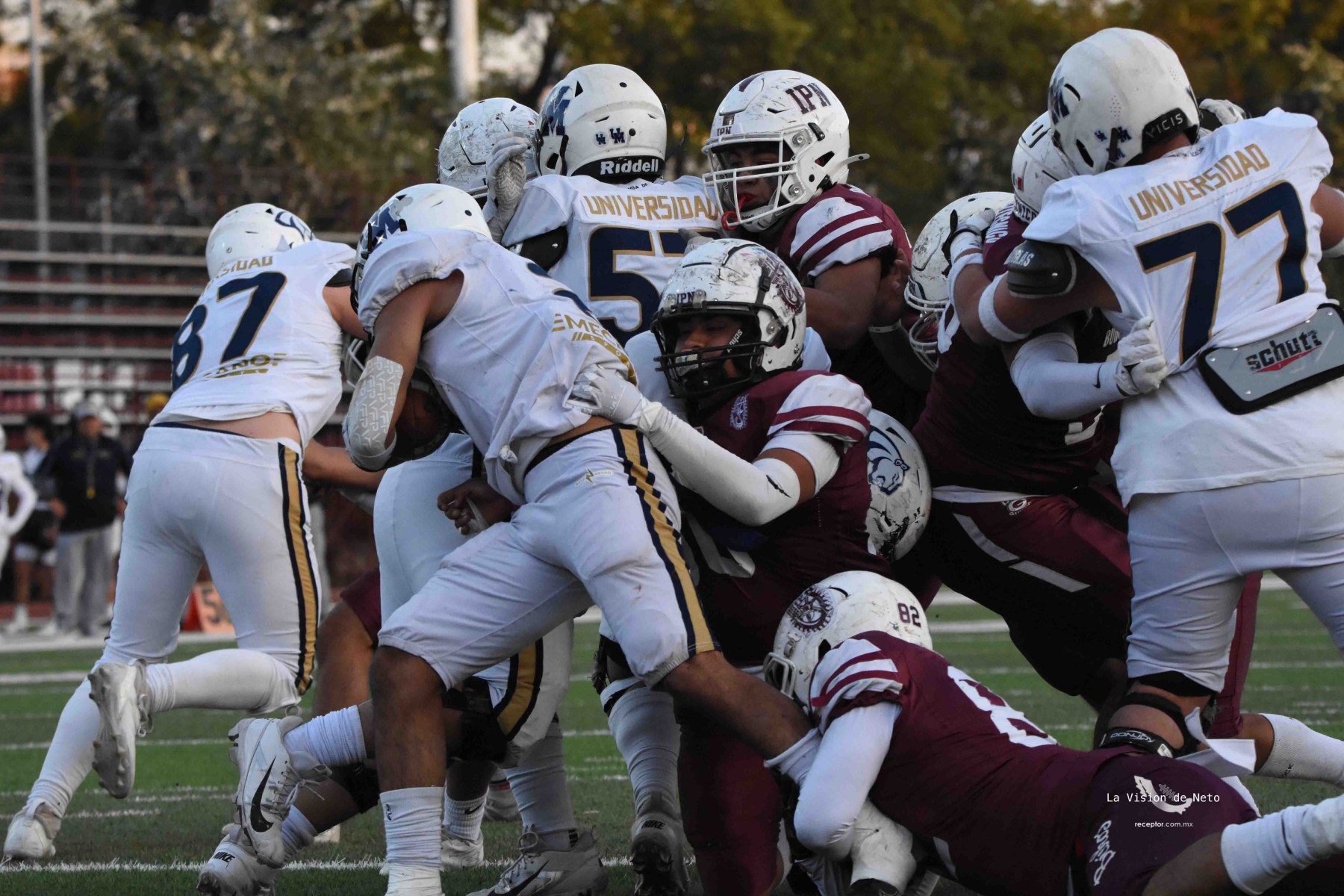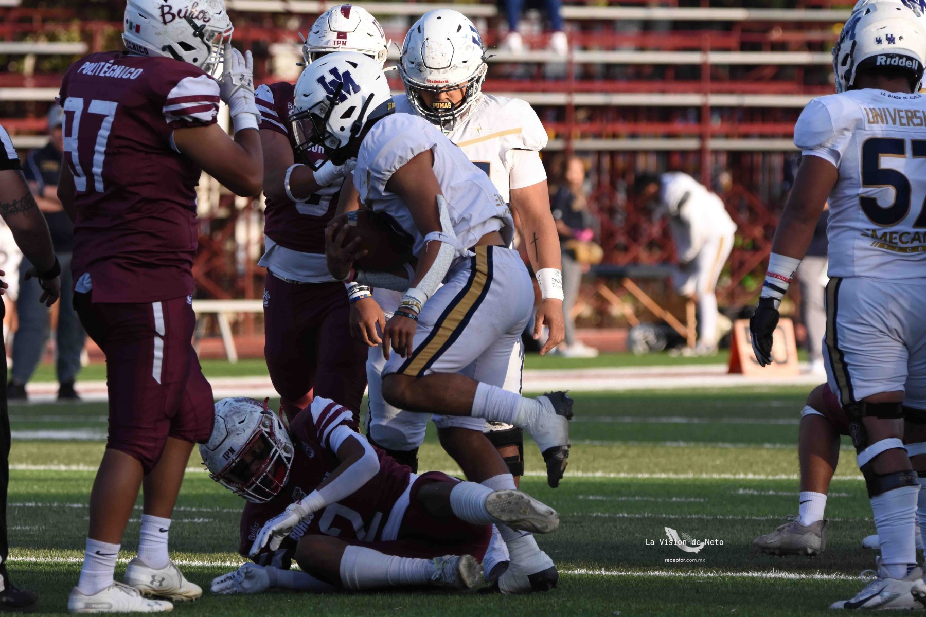 En duelo para potencialmente definir al primer lugar de la Conferencia Mario Borges, Pumas Acatlán se metió a terreno politécnico para dominar 34-7 a Búhos Guinda y con eso acariciar la Final en Casa. Las mejores imágenes de un duelo Pumas-Poli en la Semana 6 de la Intermedia ONEFA 2025, a través de la lente de Ernesto García, La Visión de Neto.