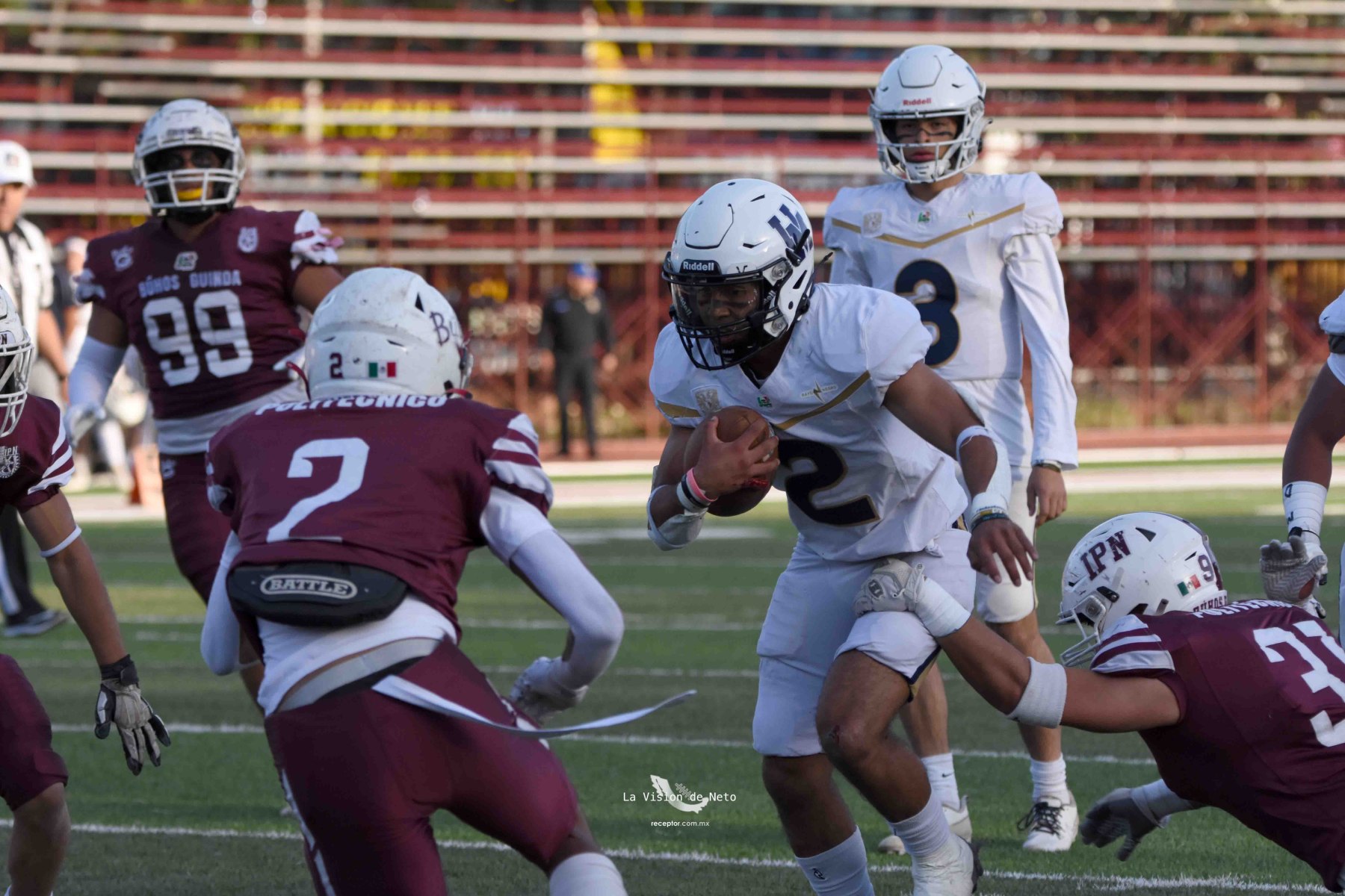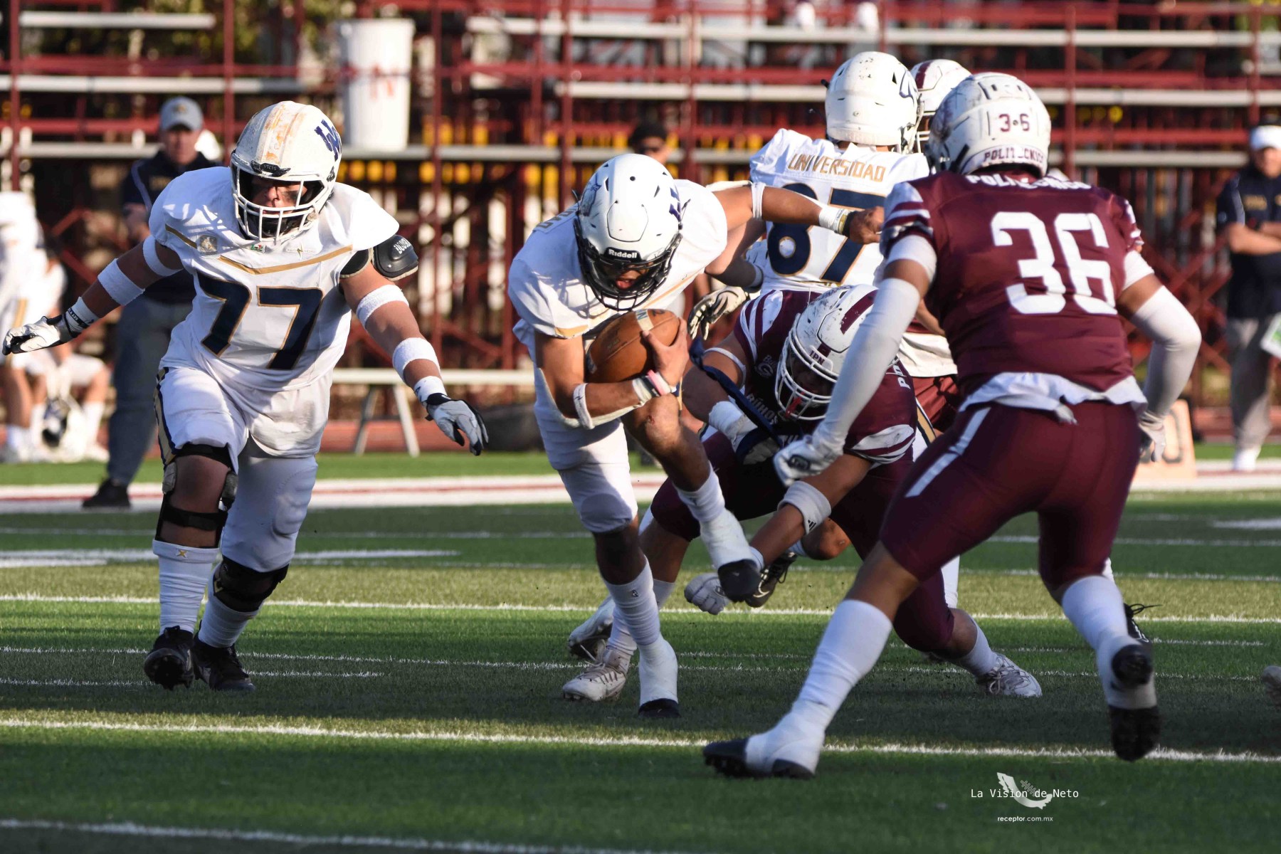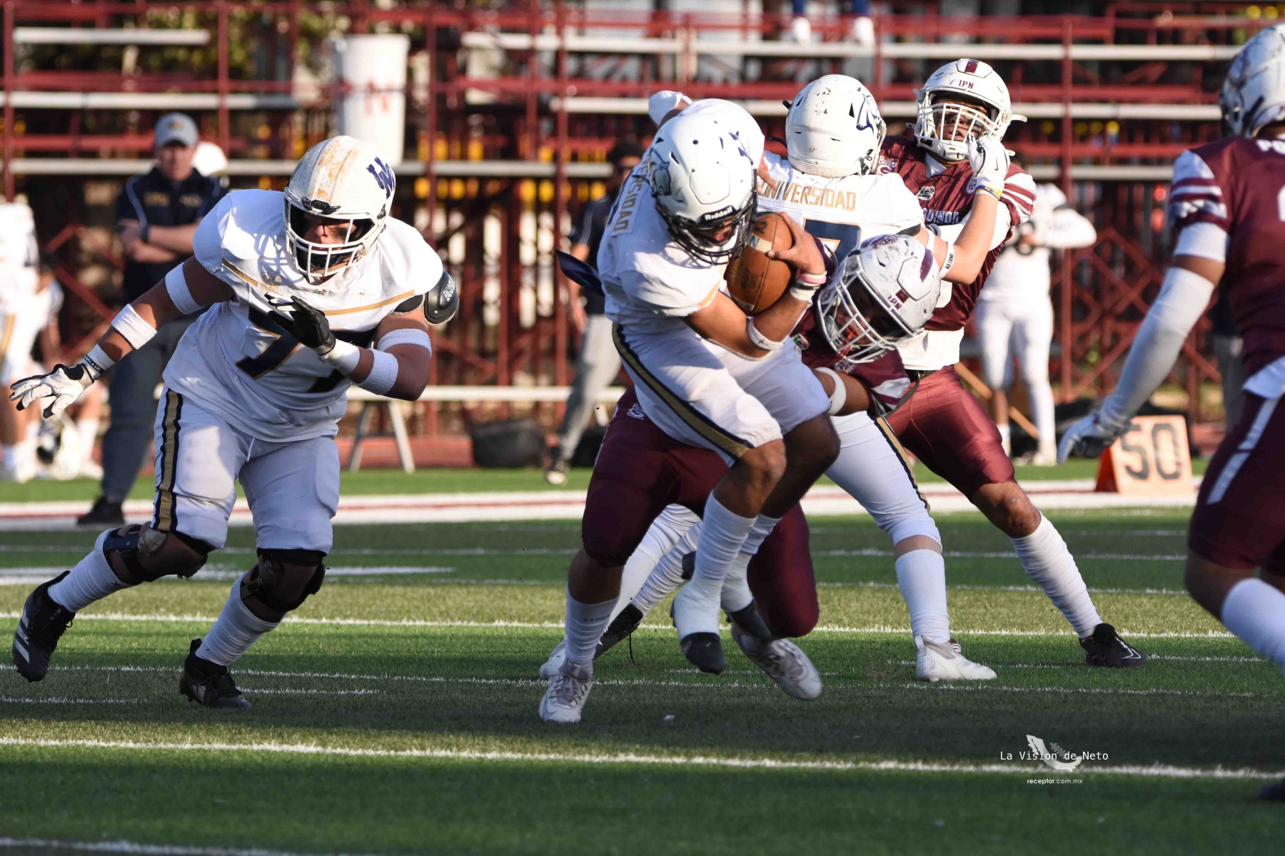 En duelo para potencialmente definir al primer lugar de la Conferencia Mario Borges, Pumas Acatlán se metió a terreno politécnico para dominar 34-7 a Búhos Guinda y con eso acariciar la Final en Casa. Las mejores imágenes de un duelo Pumas-Poli en la Semana 6 de la Intermedia ONEFA 2025, a través de la lente de Ernesto García, La Visión de Neto.